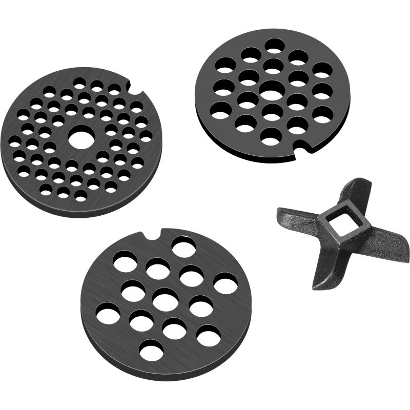 Stabilný systém upevnenia k pracovnej doske umožňuje bezpečnú a istú prácu. Ochranná nástavba priložená k súprave chráni pracovnú dosku pred poškriabaním. Súčasťou sady sú rôzne sitá a lieviky na klobásy, čo umožňuje prispôsobiť zariadenie rôznym účelom – od jemného mletia až po prípravu domácich klobás.