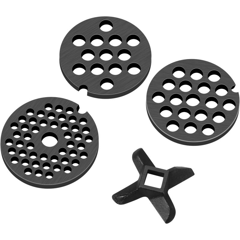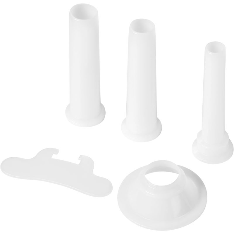 Stabilný systém upevnenia k pracovnej doske umožňuje bezpečnú a istú prácu. Ochranná nástavba priložená k súprave chráni pracovnú dosku pred poškriabaním. Súčasťou sady sú rôzne sitá a lieviky na klobásy, čo umožňuje prispôsobiť zariadenie rôznym účelom – od jemného mletia až po prípravu domácich klobás.