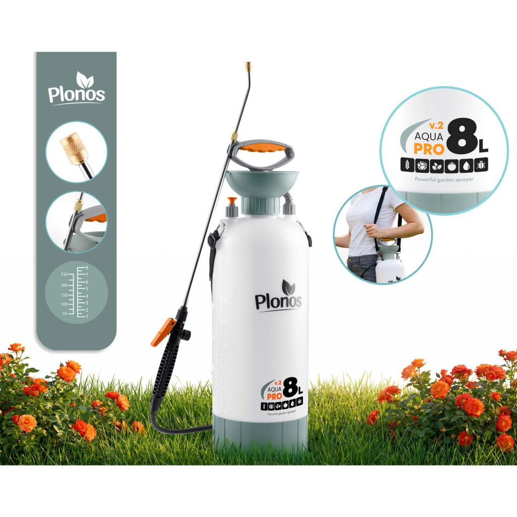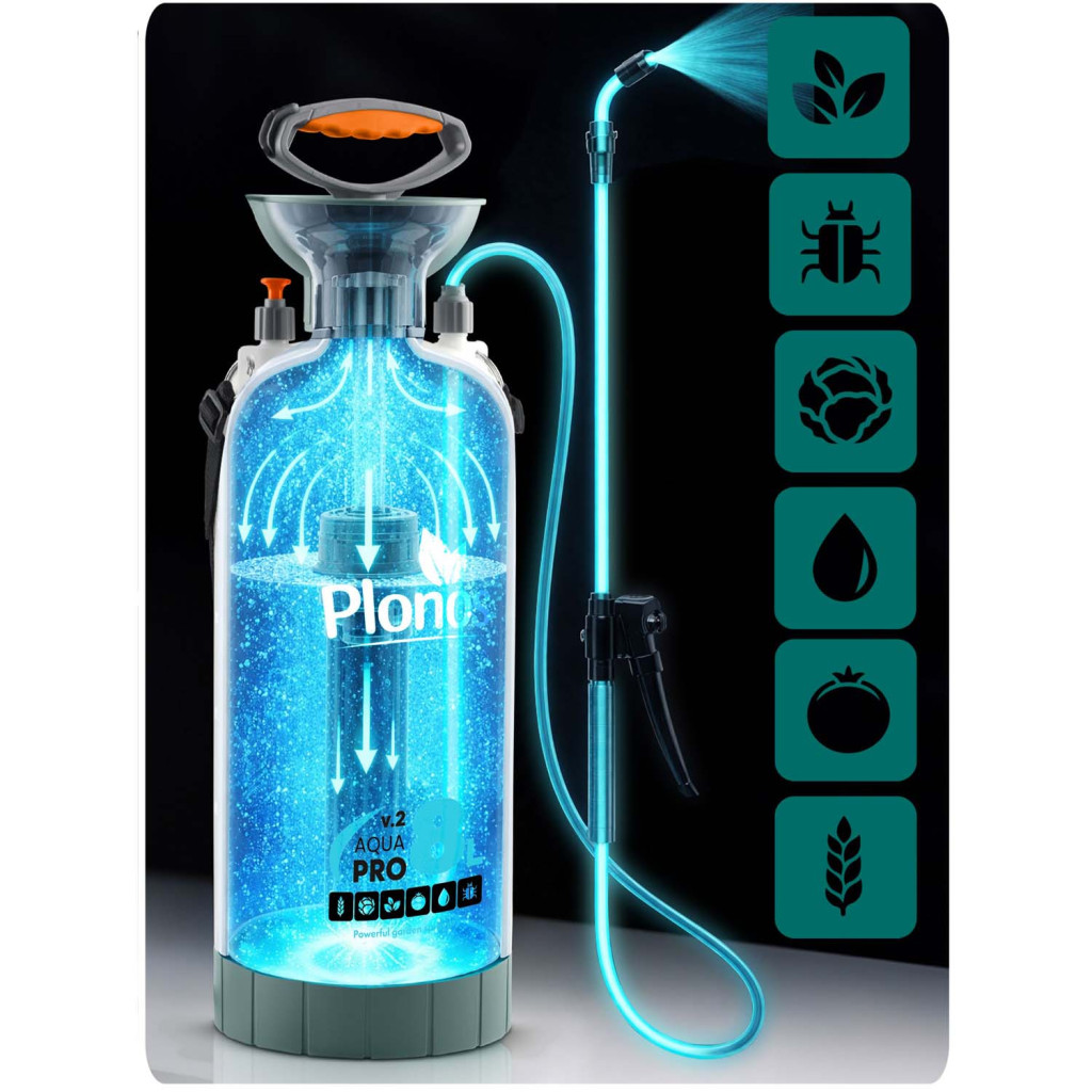 Ručný tlakový postrekovač PL-606, 8L | Plonos je praktická pomôcka vhodná na rôzne práce v záhrade, domácnosti aj okolí domu. Zariadenie vytvára stabilný tlak až 2,76 bar, vďaka čomu zabezpečuje rovnomerné a efektívne rozprašovanie kvapalín. Regulovateľná tryska umožňuje nastaviť prúd od jemnej hmly po silnejší prúd, takže postrek jednoducho prispôsobíš konkrétnemu použitiu.
