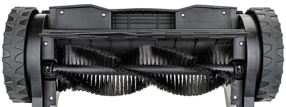 Zariadenie pracuje na čisto mechanickom pohone, čo znamená, že nie je potrebné ho pripájať k elektrickej sieti ani používať batérie. Kefy sú poháňané tlakovou silou, vďaka čomu je prevádzka tichá, úsporná a spoľahlivá. Ideálne riešenie pre miesta bez prístupu k elektrickej energie. Stroj je vybavený valcovým kotúčom a dvoma bočnými kefami s dlhými štetinami, ktoré zaručujú dôkladné čistenie aj pozdĺž okrajov a v rohoch.