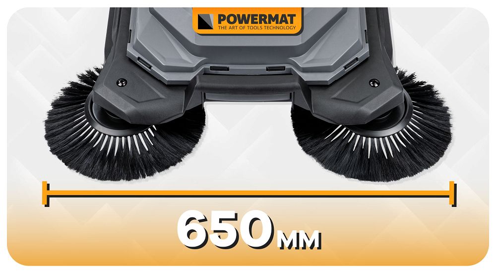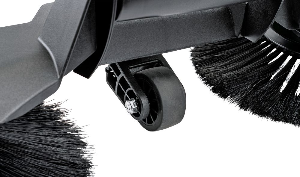 Kefy majú priemer 260 mm a zvyšujú tak pracovnú šírku na 650 mm. Veľký dosah kefiek umožňuje rýchle zbieranie nečistôt a ich pružné štetiny sa prispôsobujú nerovným povrchom, čím zabezpečujú dôkladné zametanie dlaždíc aj dlažobných kameňov. Zariadenie má 20-litrový kontajner na odpad, ktorý umožňuje dlhú prevádzku bez nutnosti častého vyprázdňovania. Kontajner sa dá ľahko vybrať a vyprázdniť bez kontaktu s nečistotami.