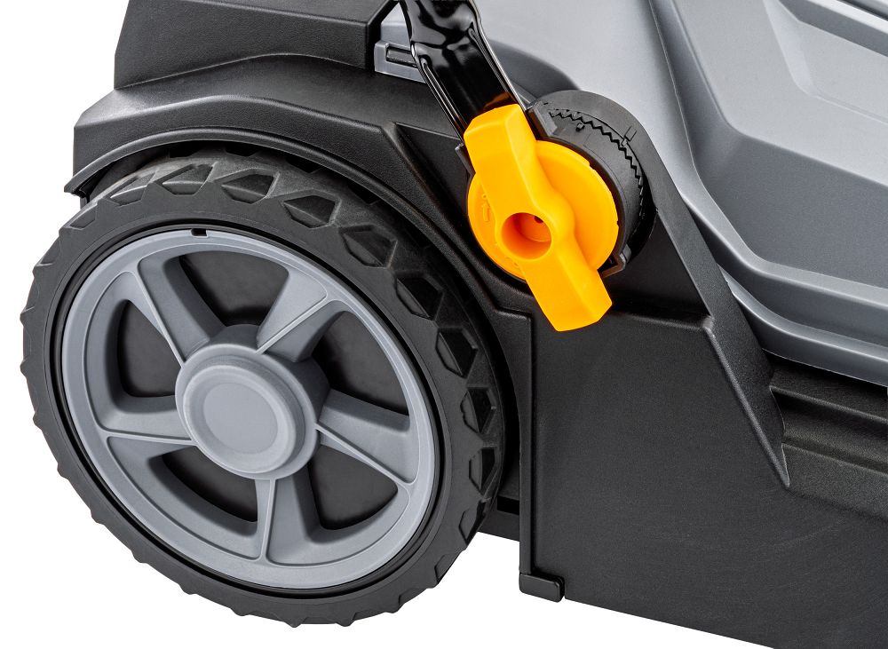 Veľké pogumované kolesá a otočné predné koleso zabezpečujú plynulú manipuláciu a stabilitu na rôznych typoch povrchov. Zametač je vhodný pre použitie v interiéri aj exteriéri. Zariadenie váži len 9,1 kg, čo v kombinácii s nastaviteľnou výškou rukoväte zaručuje pohodlné a ergonomické ovládanie. Rýchlu prepravu umožňuje praktická rukoväť. Kompaktný dizajn tiež uľahčuje skladovanie zariadenia po použití.
