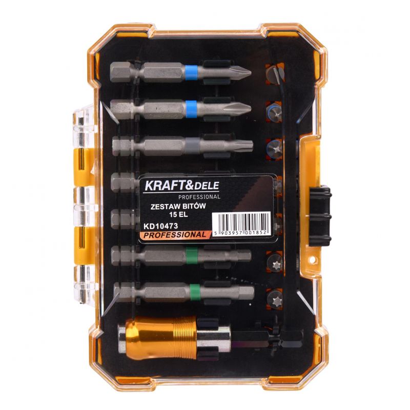 Sada bitov, 15-dielna | KD10473 obsahuje rôzne typy nadstavcov na skrutkovanie, vhodná pre domáce aj profesionálne použitie. Vďaka svojej odolnosti, spoľahlivosti, presnosti, vysokokvalitným materiálom, moderným dizajnovým riešeniam a ďalším výhodám určite uspokojí aj tých najnáročnejších používateľov. Sada je dodávaná v praktickom balení, ktoré umožňuje rýchly prehľad o dostupných nástrojoch.