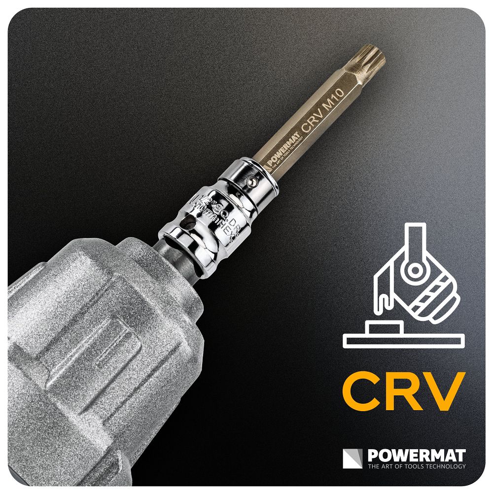 Bitové nástavce z CrV ocele odolávajú namáhaniu pri práci s nárazovým skrutkovačom, nelámu sa ani pri zaseknutých skrutkách a umožňujú plynulú prácu bez zbytočných prerušení. Dĺžky 30 mm a 75 mm umožňujú zvoliť vhodný hrot podľa úlohy – kratšie sa hodia na prácu v tesnej blízkosti materiálu a dlhšie uľahčujú prístup k ťažko dostupným skrutkám.