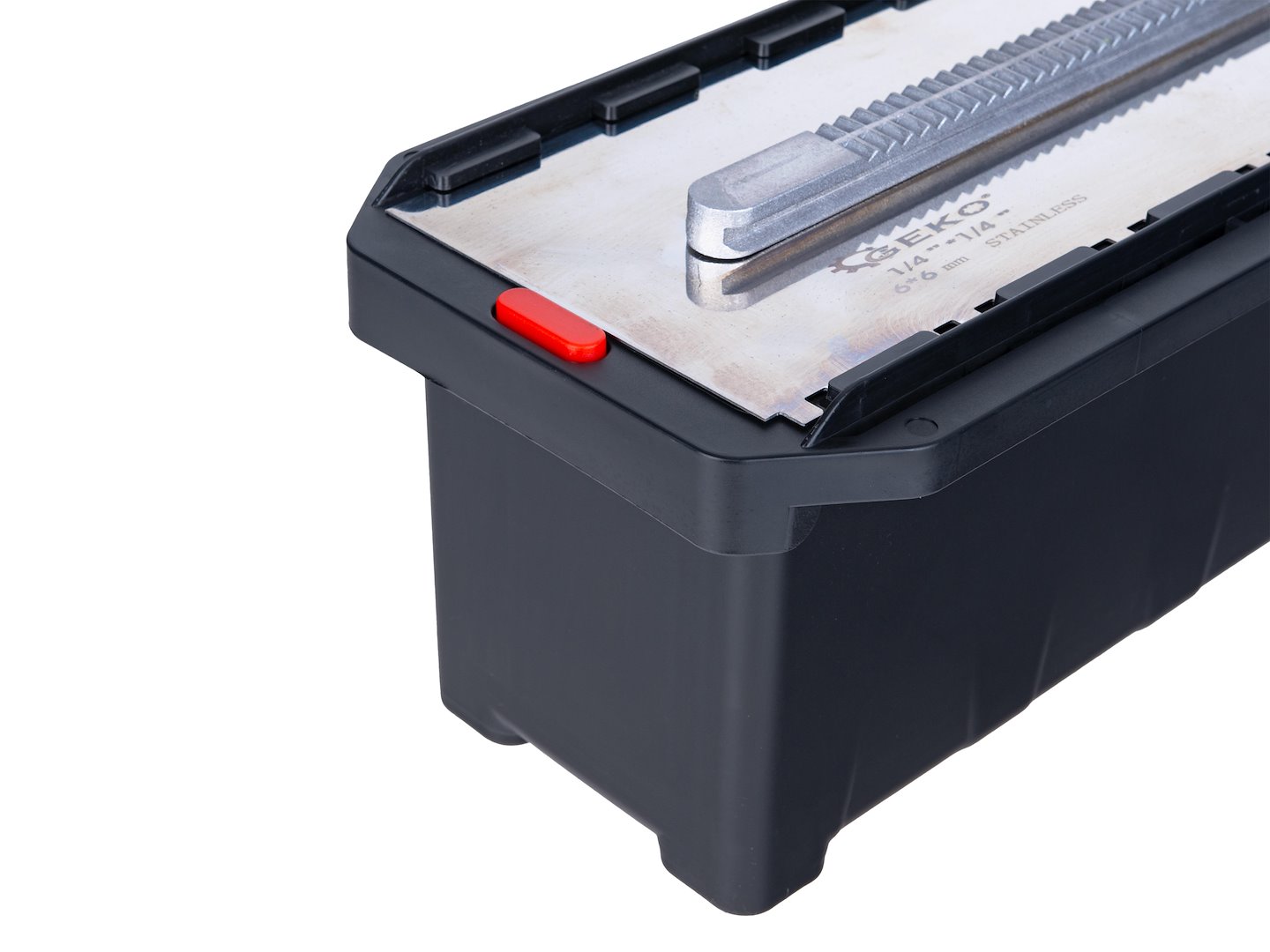 Všetky stierky sú vyrobené z nehrdzavejúcej ocele, čo zaručuje odolnosť proti korózii a trvácnosť aj pri častom kontakte s vlhkosťou a lepidlom. Rúčky sú namontované na vodiacej lište, ktorú je možné umiestniť kdekoľvek, čo vám umožňuje prispôsobiť nástroj vašim pracovným návykom aj tomu, či ste ľavák alebo pravák.