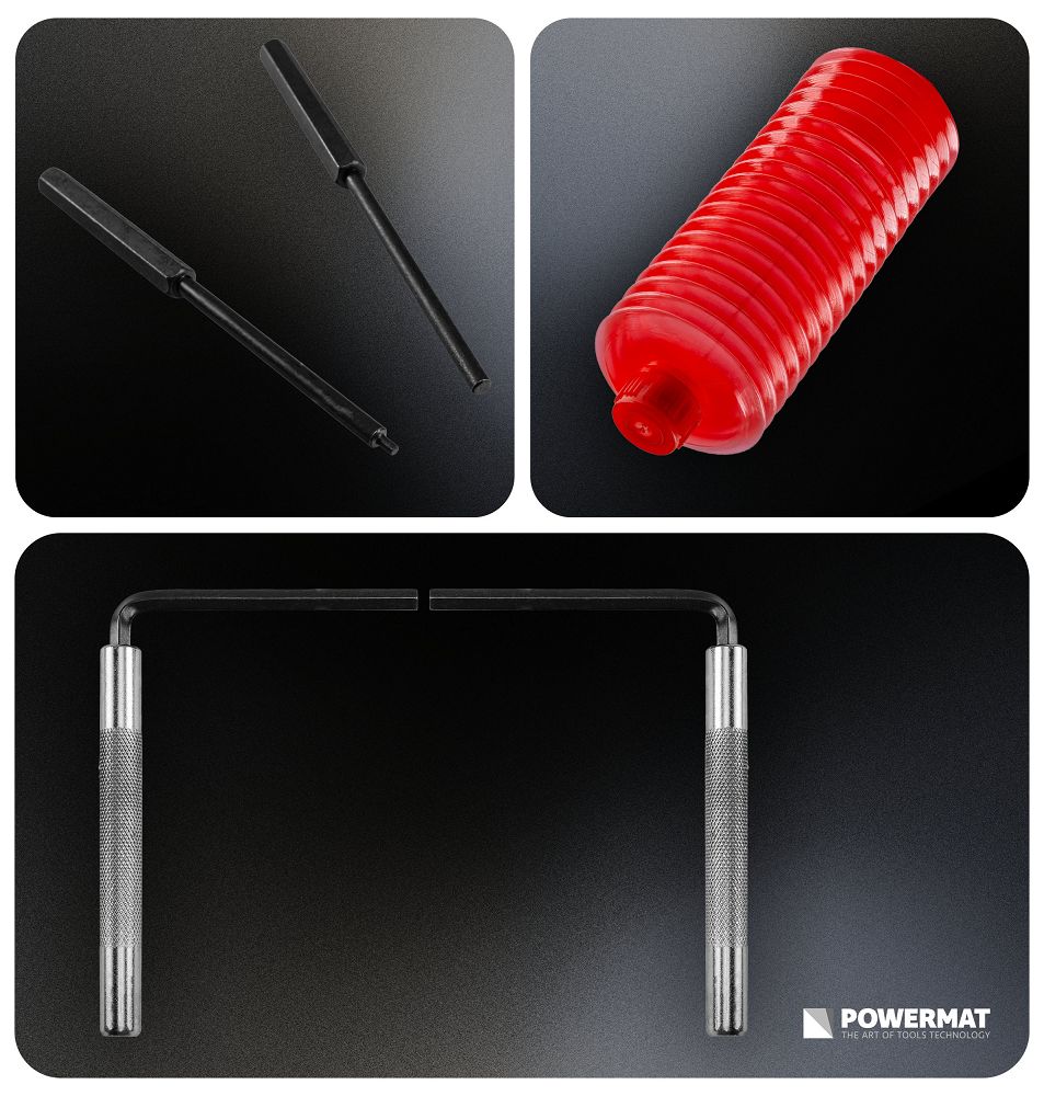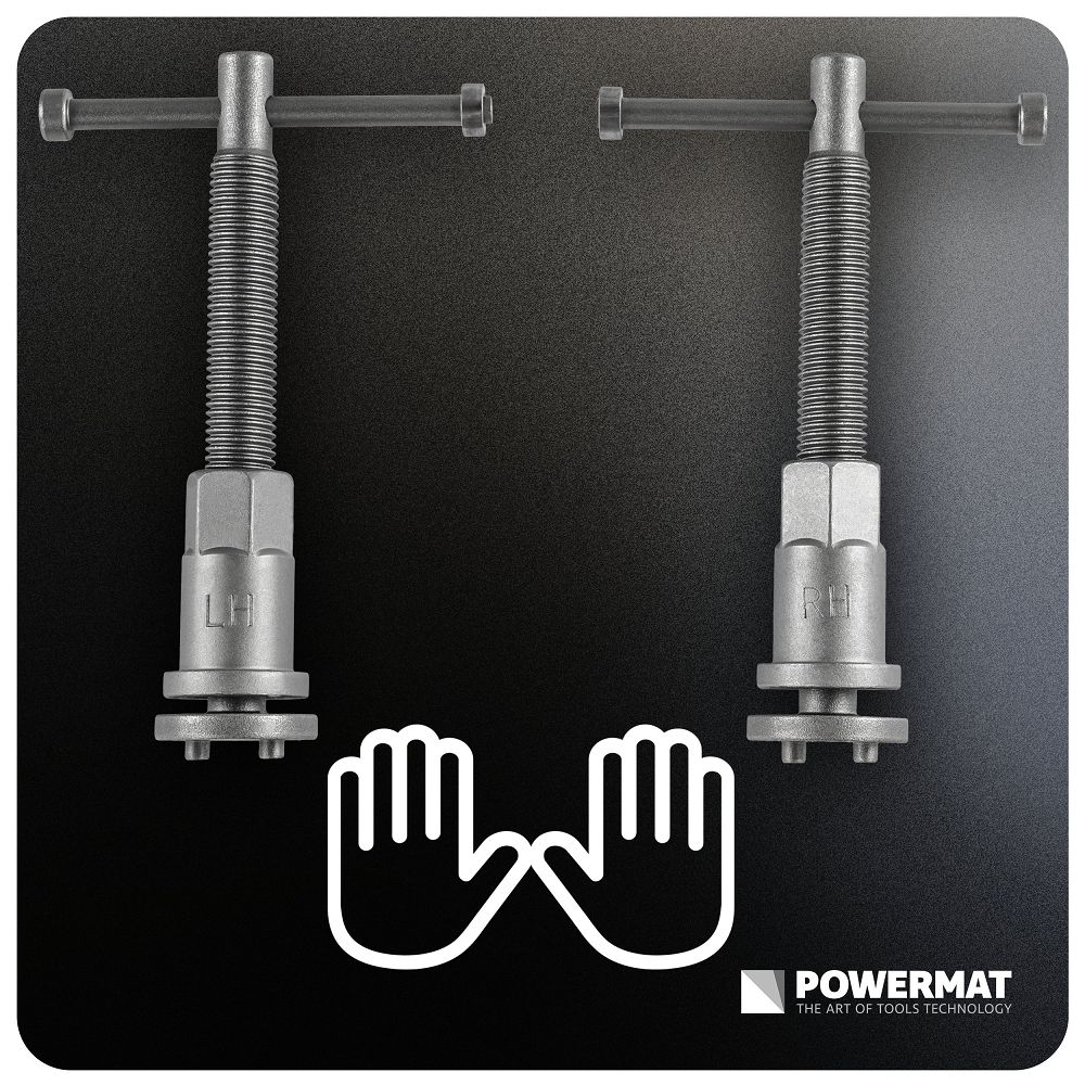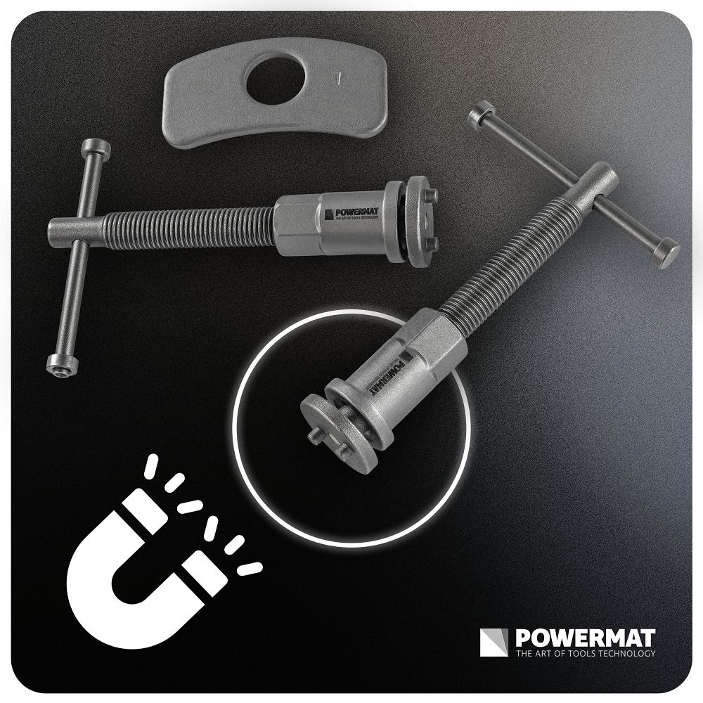 Dve pravé a ľavé lisy umožňujú prácu v rôznych smeroch piestov a lepšiu kontrolu pri spätnom pohybe. Prispôsobenie strmeňom znižuje riziko poškodenia. Kľúče 6 mm a 7 mm a dva typy vyťahovačov rozširujú možnosti bez ďalšieho náradia. Ochranný obal chráni komponenty. Magnetické špičky držia diel v osi piestu, zvyšujú kontrolu a minimalizujú riziko poškodenia brzdového systému. Všetky diely sú usporiadané a zabezpečené pre jednoduché prenášanie bez straty.