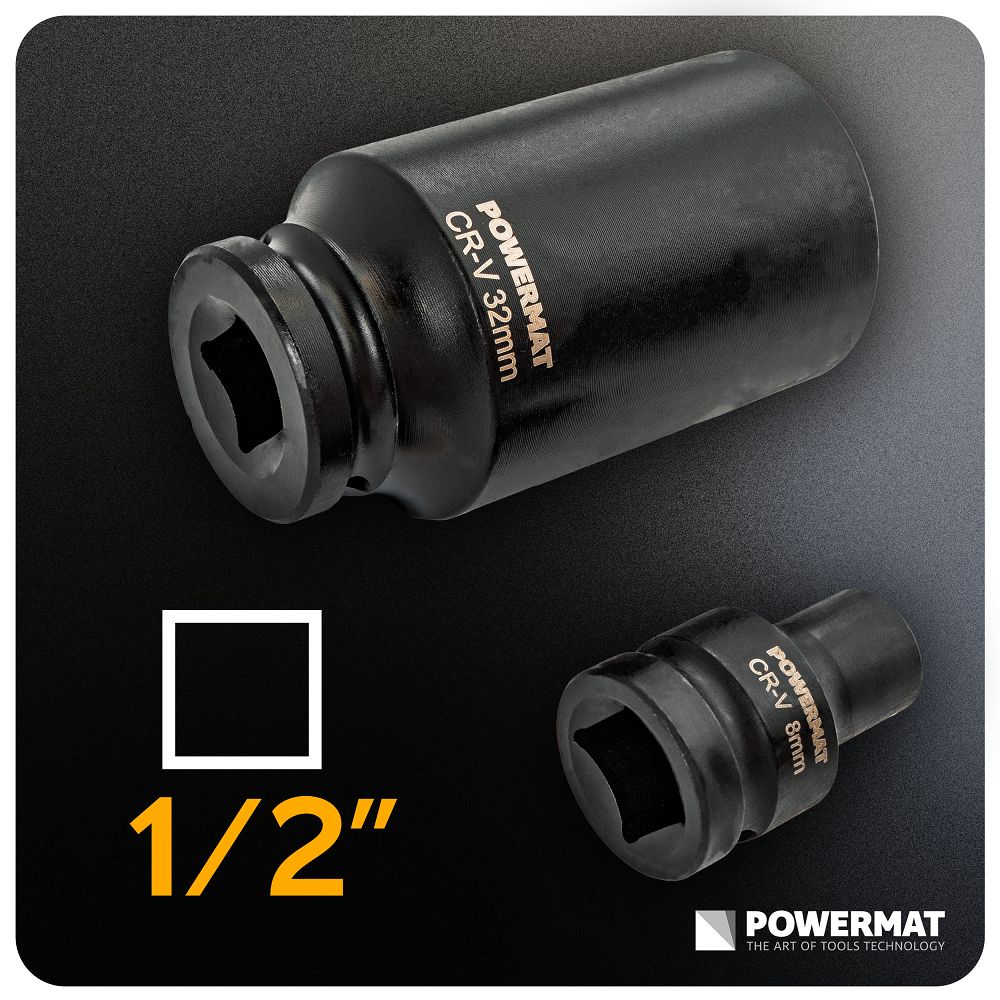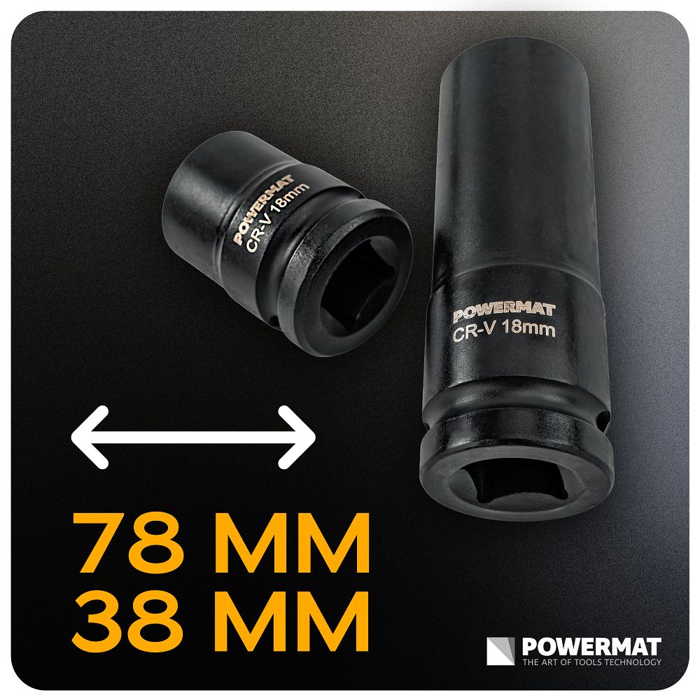 Sada obsahuje nástavce s dĺžkou 38 mm a 78 mm pre štandardný aj hlbší prístup k skrutkám. Veľkosti 8-32 mm umožňujú prispôsobenie rôznym typom spojov a štandardné pripojenie 1/2″ zaručuje kompatibilitu s bežnými rázovými aj ručnými kľúčmi bez potreby adaptérov – stačí pripojiť a začať pracovať.