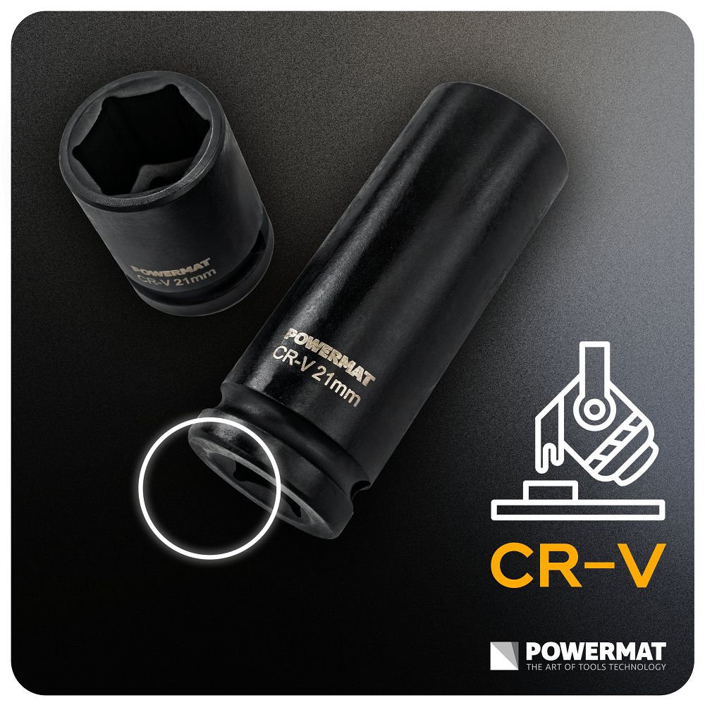 Nástrčné kľúče sú vyrobené z Cr-V ocele, ktorá sa používa v nástrojoch určených pre ťažšie zaťaženie. Materiál dobre odoláva intenzívnej práci a častému používaniu. Poskytuje vám väčšiu odolnosť a stabilitu pri utahovaní. Pracujte tak s väčšou istotou s a majte skutočný pocit kontroly nad pripojením.