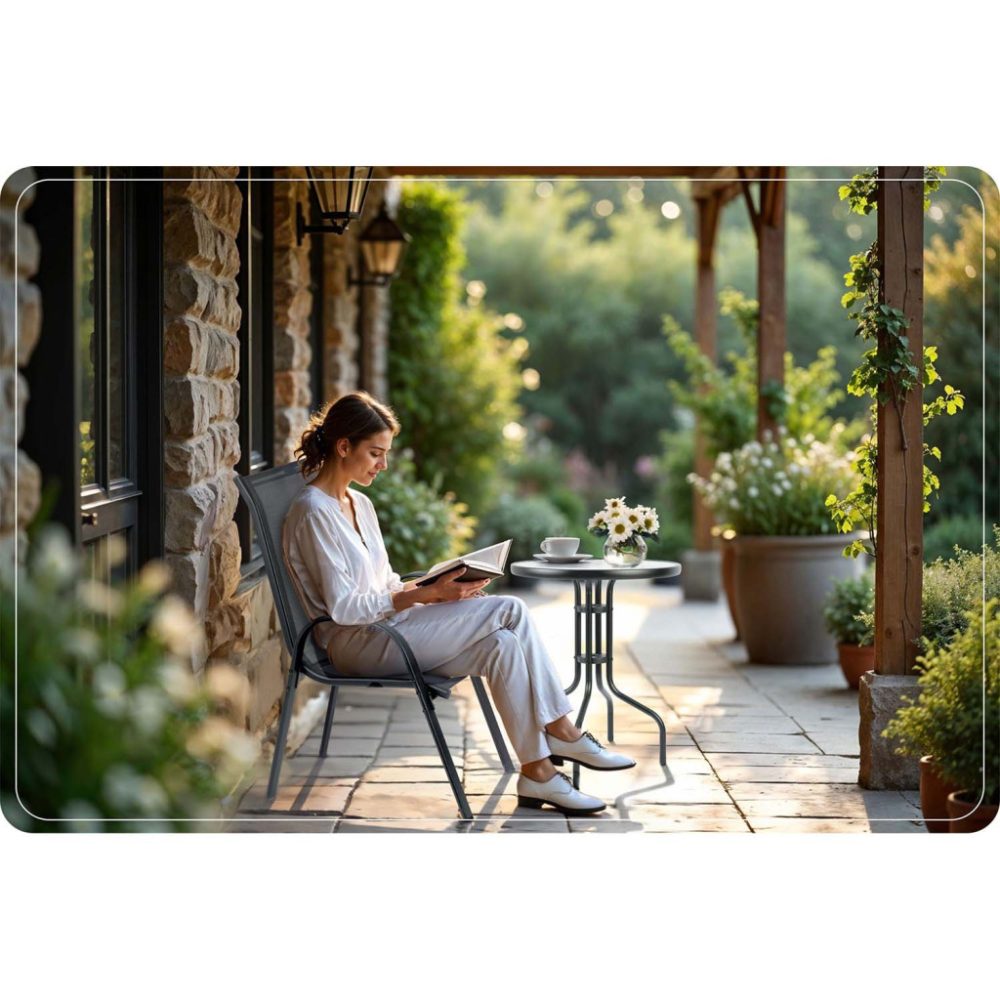Jednoduché línie a moderný vzhľad umožňujú stoličkám ľahko zapadnúť do rôznych exteriérových priestorov. Skladací mechanizmus uľahčuje manipuláciu a skladovanie, čo oceníte najmä pri menších priestoroch alebo pri sezónnom uskladnení. Táto praktická a štýlová súprava je skvelým doplnkom pre každý exteriér, poskytujúc komfortné a spoľahlivé sedenie pri každej príležitosti.