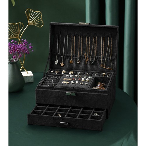 - ORGANIZÁCIA ŠPERKOV – šperkovnica vám umožní efektívne usporiadať vašu zbierku. Má rôzne veľkosti priehradiek a vreciek, ktoré uľahčujú uloženie všetkých druhov šperkov, ako sú prstene, náhrdelníky, náramky, hodinky a náušnice . To vám umožní ľahko nájsť a vybrať ten správny šperk na nosenie.