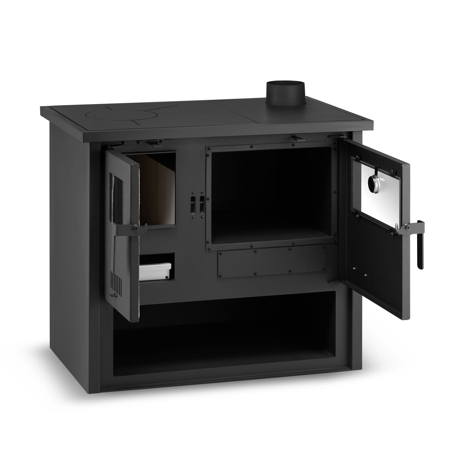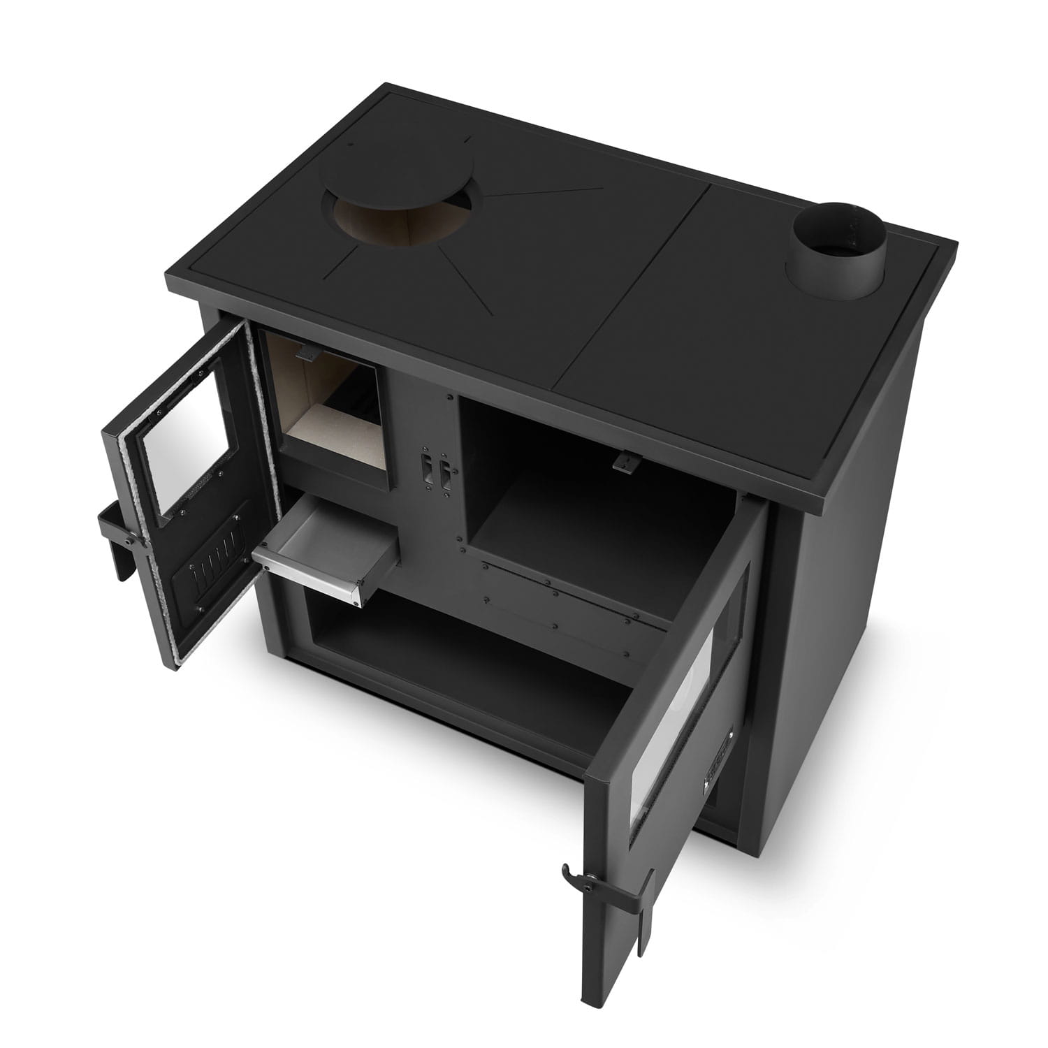 Sporák má rozmeri 860 x 535 x 810 mm, čo z neho robí ideálnu voľbu pre kuchyne s obmedzeným priestorom. Napriek svojim malým rozmerom ponúka všetko, čo potrebujete na pohodlné varenie a kúrenie. Výkon kúrenia 9-11 kW umožňuje efektívne zvýšiť teplotu v stredne veľkej miestnosti a priestranná spaľovacia komora (235 x 400 x 330 mm) umožňuje dlhšie horenie bez potreby častého dopĺňania dreva.
