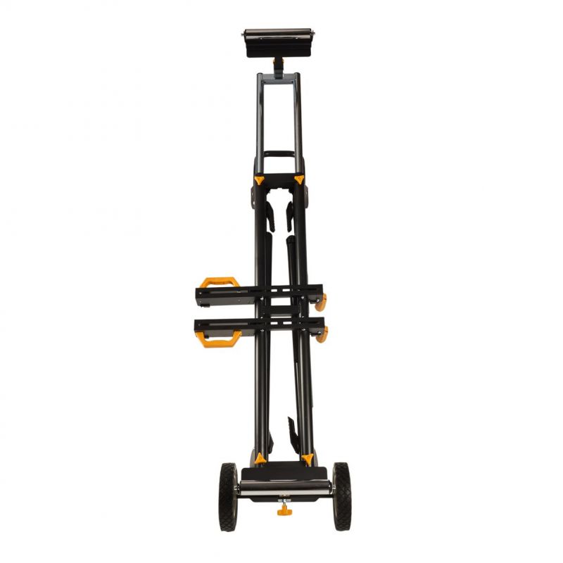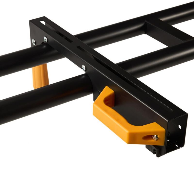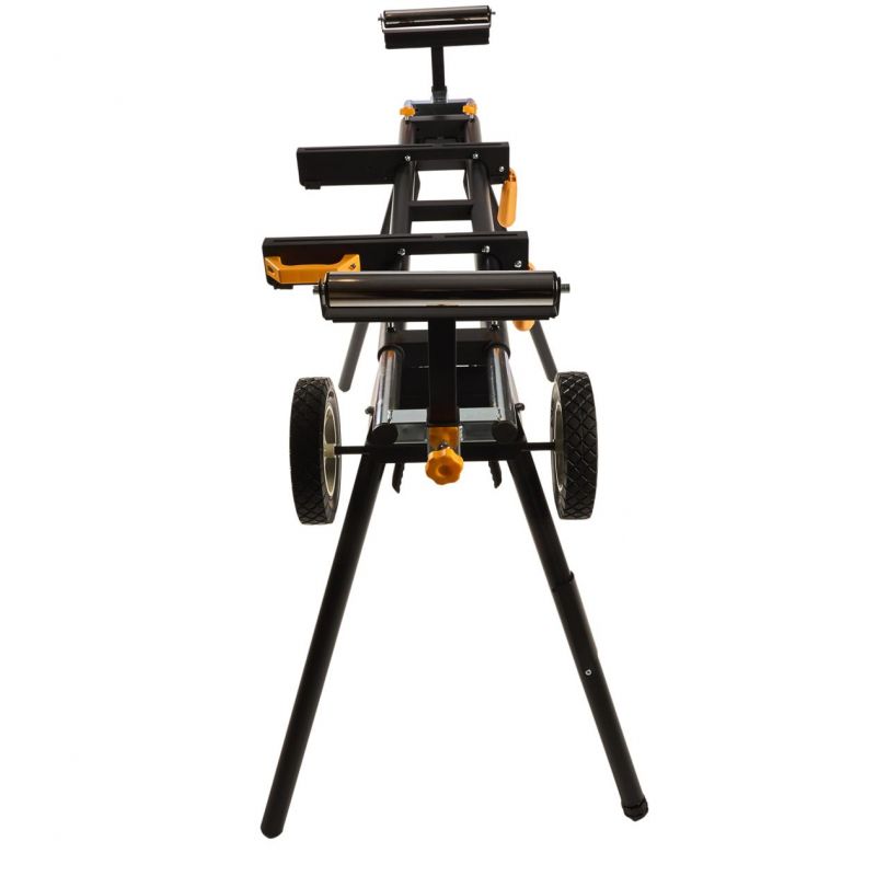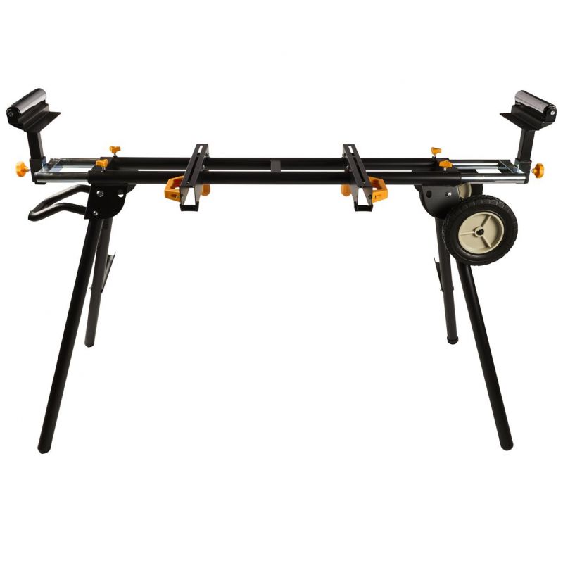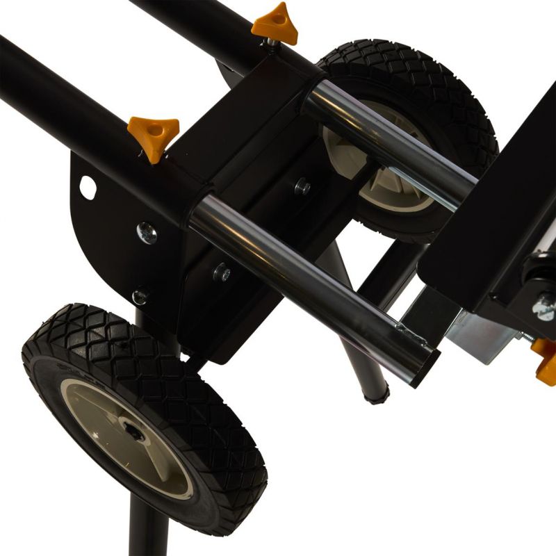 Stojan je vybavený výsuvnými bočnými podperami, ktoré umožňujú rozšírenie pracovnej plochy až na 216 cm, čo výrazne uľahčuje manipuláciu s dlhými obrobkami. Nastaviteľná výška pracovnej plochy (81 cm) a možnosť vyrovnania nerovností podlahy pomocou regulovateľnej nohy zabezpečujú pohodlnú a bezpečnú prácu. Skladacia konštrukcia stojana umožňuje jednoduché zloženie a kompaktné uskladnenie, čo šetrí miesto v dielni alebo garáži.