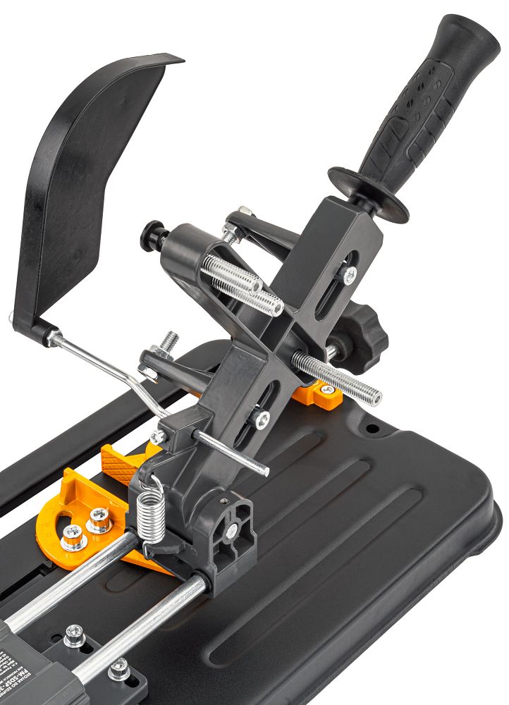 Nastaviteľný ochranný kryt kotúča chráni pred iskrami a odletujúcimi úlomkami bez obmedzenia viditeľnosti materiálu. To umožňuje obsluhe pracovať v bezpečných podmienkach a zároveň mať plnú kontrolu nad nástrojom. Malé rozmery stojana uľahčujú montáž a skladovanie, pričom je zároveň mimoriadne odolný a funkčný.