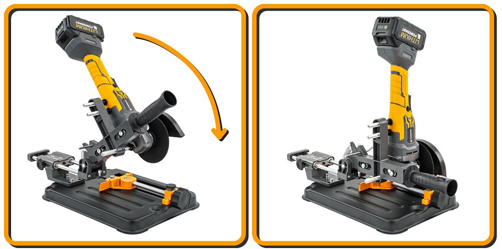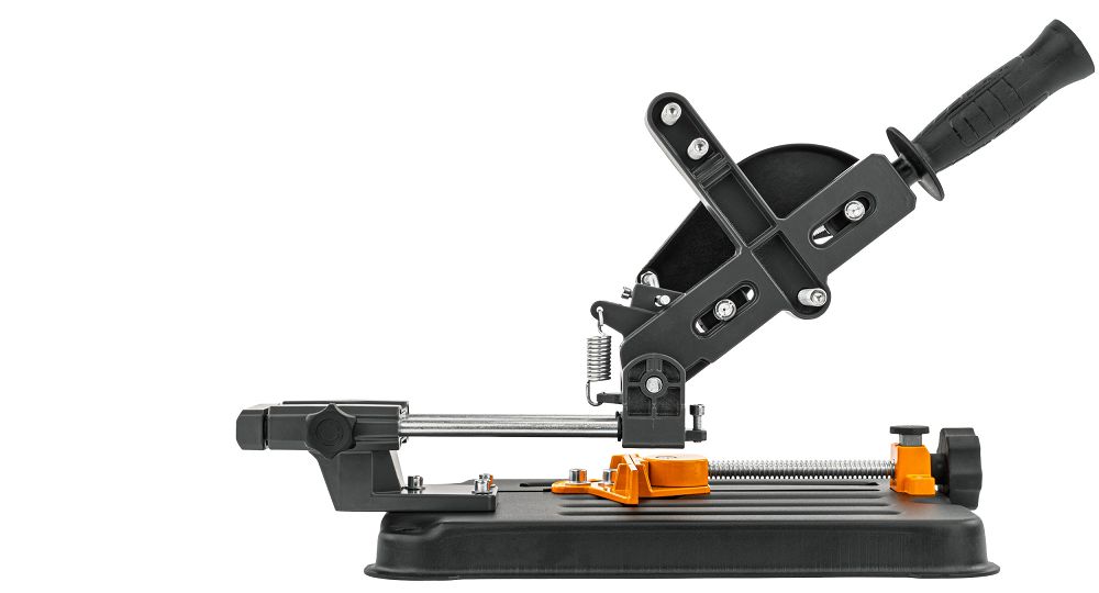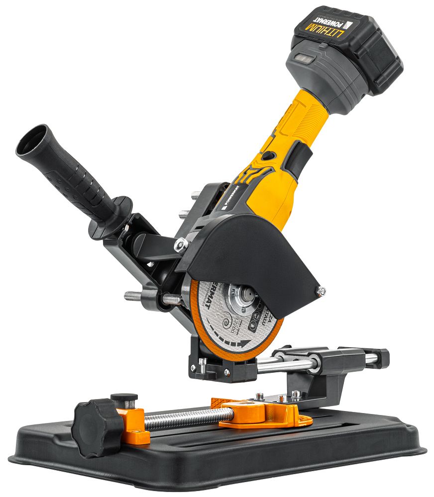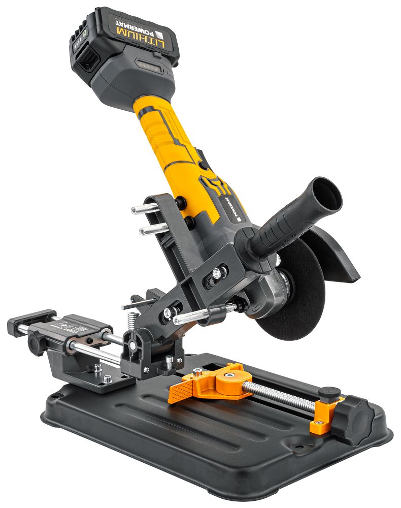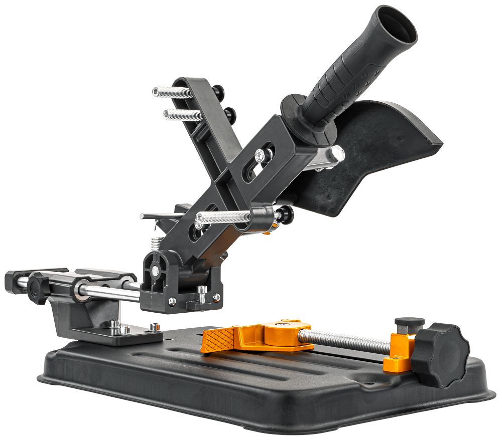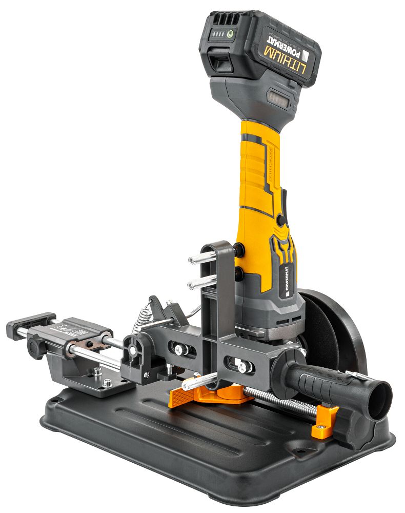 Stojan pre uhlovú brúsku, 125mm | PM-SDSP-330T je stabilný a robustný doplnok, ktorý poskytuje bezpečné uchytenie nástroja a presné vodorovné brúsenie. Zariadenie je kompatibilné s uhlovými brúskami vybavenými kotúčmi s maximálnym priemerom 125 mm. To umožňuje efektívne a rýchle rezanie rôznych materiálov pri zachovaní vysokej presnosti.