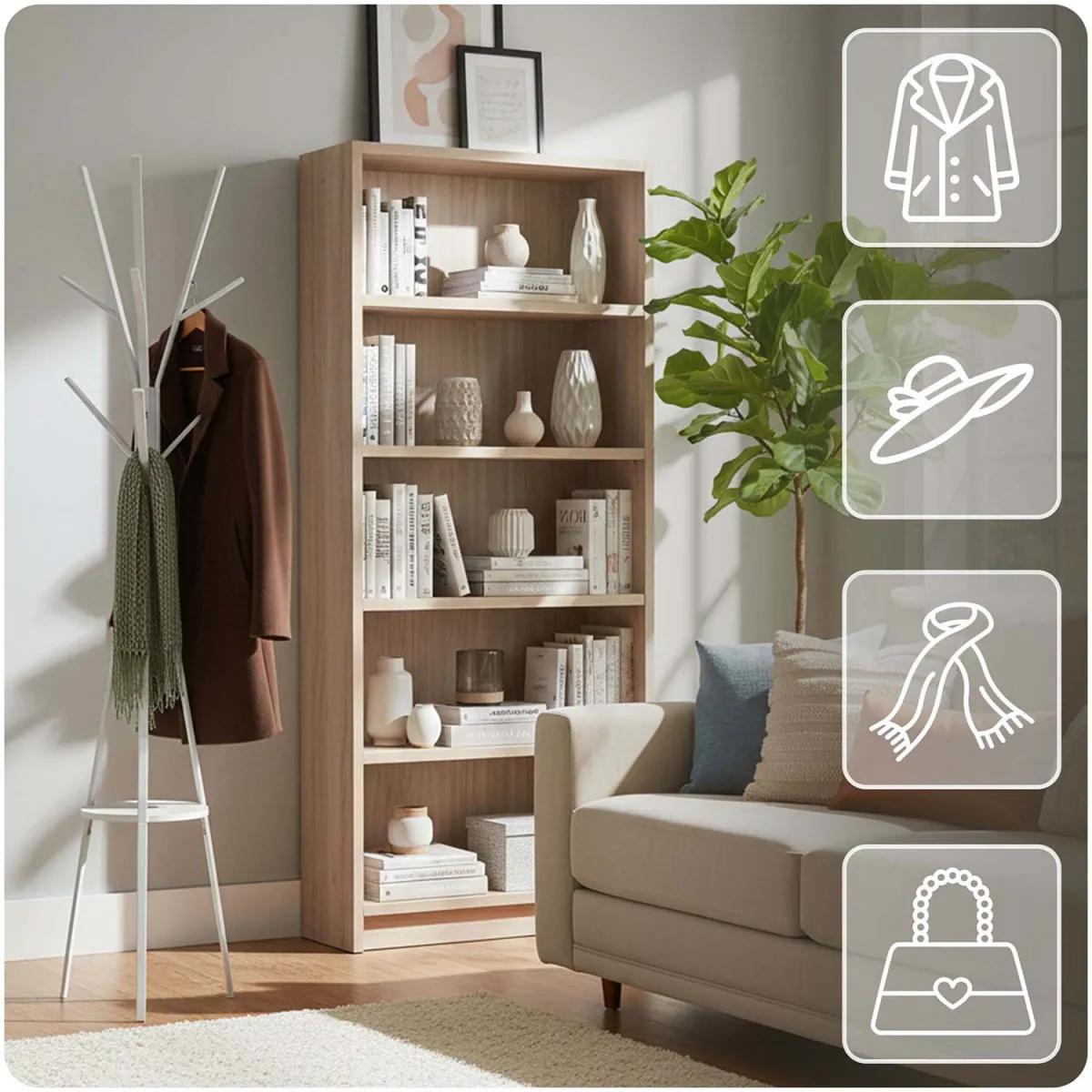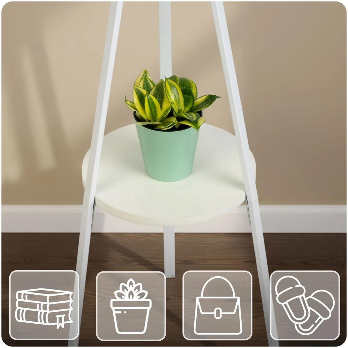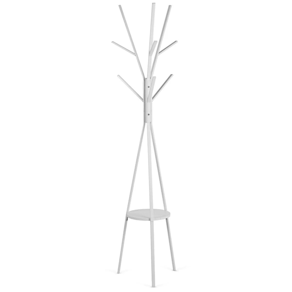Stojanový vešiak na odevy MS-869, biely | Massido poskytuje praktické riešenie na zavesenie oblečenia s dodatočnou policou na doplnky. Vešiak ponúka praktické riešenie pre organizovanie šatníka či vstupnej chodby – disponuje viacerými háčikmi na kabáty, bundy, tašky či čiapky a zároveň je vybavený policou na drobnosti ako rukavice, klobúky či dekorácie. Jeho pevná konštrukcia zabezpečuje stabilitu, zatiaľ čo jednoduchý dizajn sa ľahko začlení do rôznych interiérových štýlov.