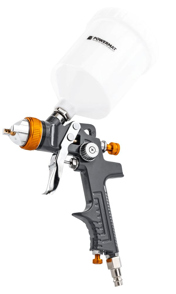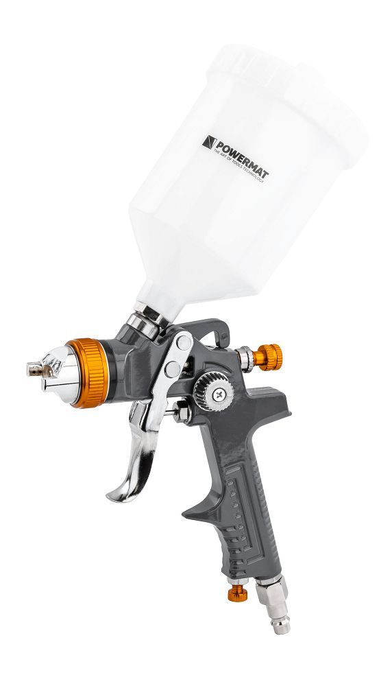 Striekacia pištoľ, 600ml | PM-PDM-170T je praktický a presný nástroj určený na striekanie farieb, lakov a iných povrchových úprav. Pištoľ je kompatibilná s mnohými typmi náterov, ako sú moridlá, základné nátery, laky a prostriedky na ochranu dreva, čo z nej robí všestranný nástroj na dokončovacie práce.