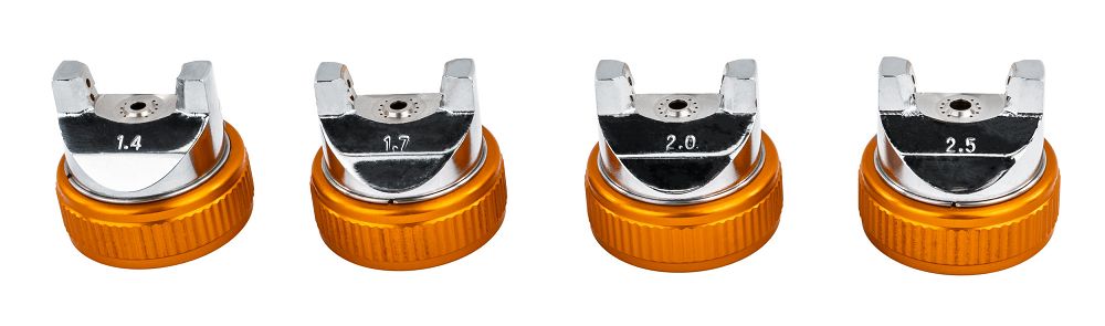 Sada obsahuje štyri trysky s ihlami s priemermi 1,4 mm, 1,7 mm, 2,0 mm a 2,5 mm, ktoré umožňujú prispôsobiť striekacie pištole farbám, základným náterom, moridlám a hustým materiálom a striekacím plnivám. Menšie trysky poskytujú presné lakovanie, zatiaľ čo väčšie trysky umožňujú pohodlné nanášanie základných náterov, moridiel a striekacích plnív.