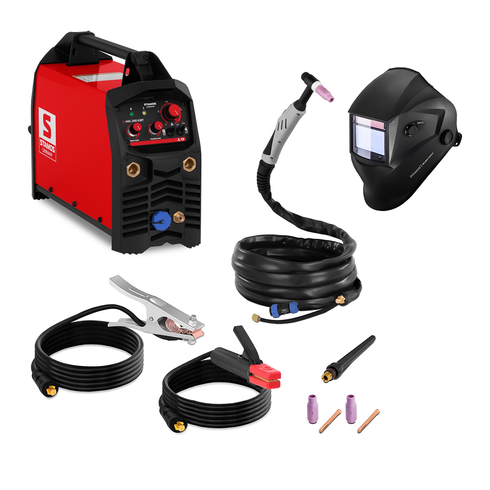 Kvalitná zváracia súprava pozostáva zo zváracieho zariadenia S-WIG 200 IGBT od firmy Stamos Germany a zváracej kukly Blaster Advanced Series zo skupiny Stamos Welding Group. Zváracie zariadenie bude nenahraditeľné pri opravách a rekonštrukciách v kovoobrábacom a stavebnom priemysle. Ergonomická, praktická a kompaktná konštrukcia zváračky pre ľahšiu manipuláciu.