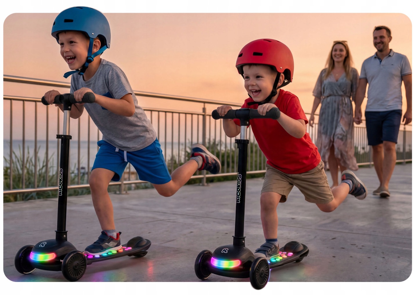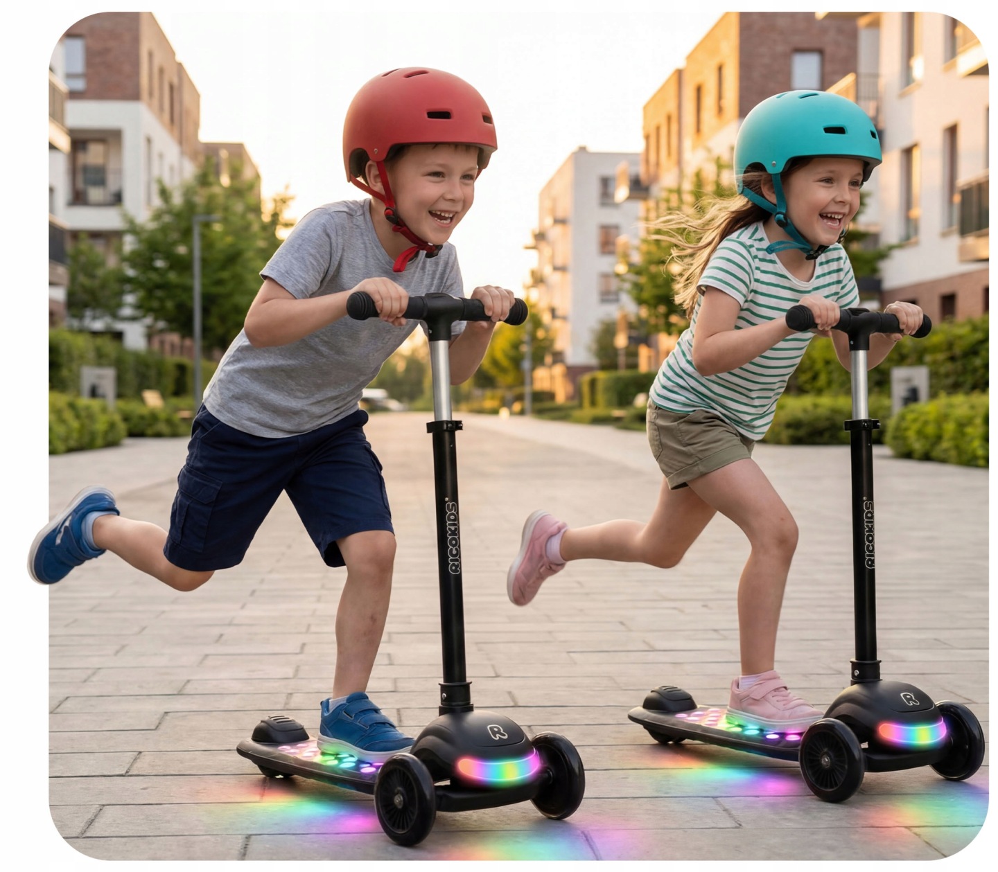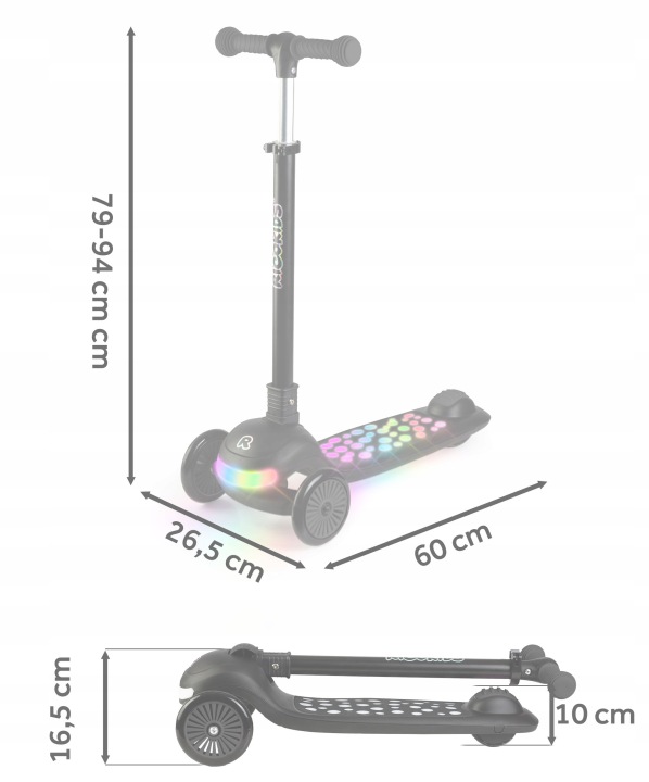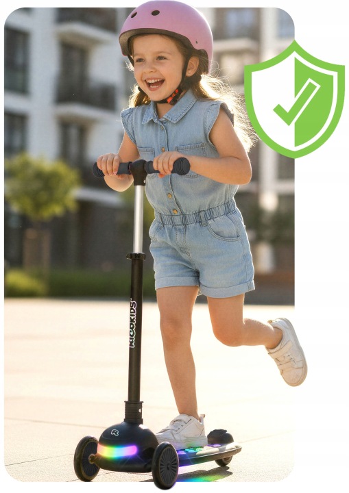 Svietiaca trojkolesová kolobežka, čierna | Ricokids Glowi ponúka stabilnú jazdu a jednoduché ovládanie, ktoré podporuje rozvoj rovnováhy a koordinácie. Ľahká konštrukcia umožňuje jednoduchú manipuláciu a dobrú kontrolu pri jazde. Model je vybavený svietiacimi LED prvkami, ktoré zvyšujú viditeľnosť a zároveň robia jazdu atraktívnejšou najmä za zhoršených svetelných podmienok.