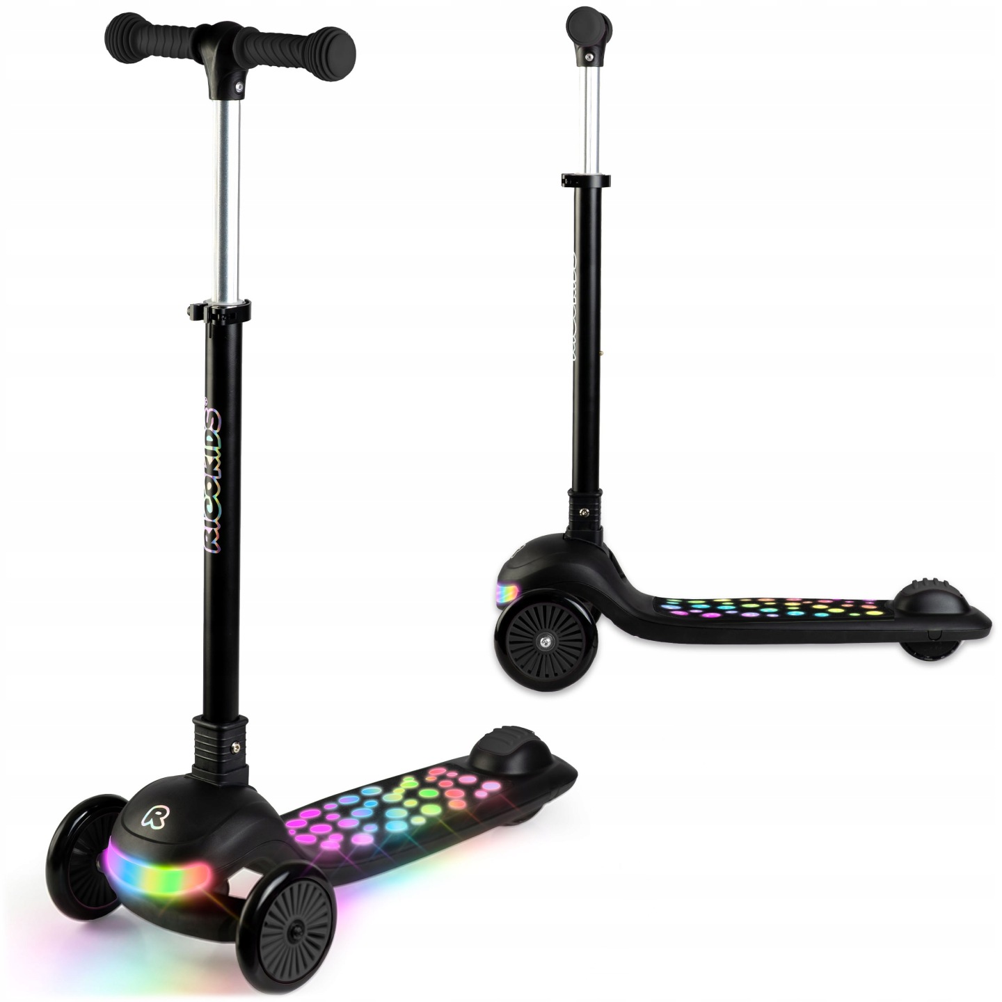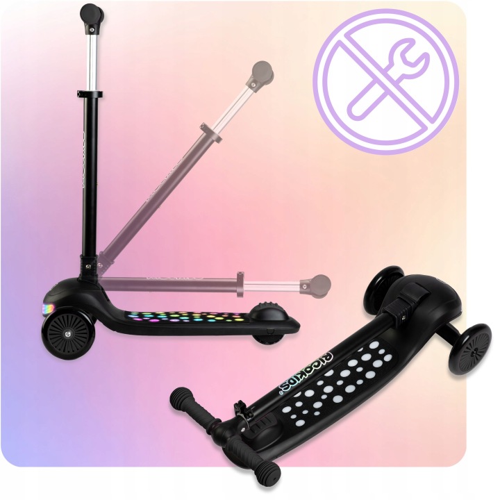 Svietiaca trojkolesová kolobežka, čierna | Ricokids Glowi