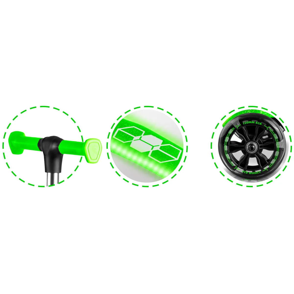 Svietiaca trojkolesová kolobežka, zelená | Ricokids Jelly