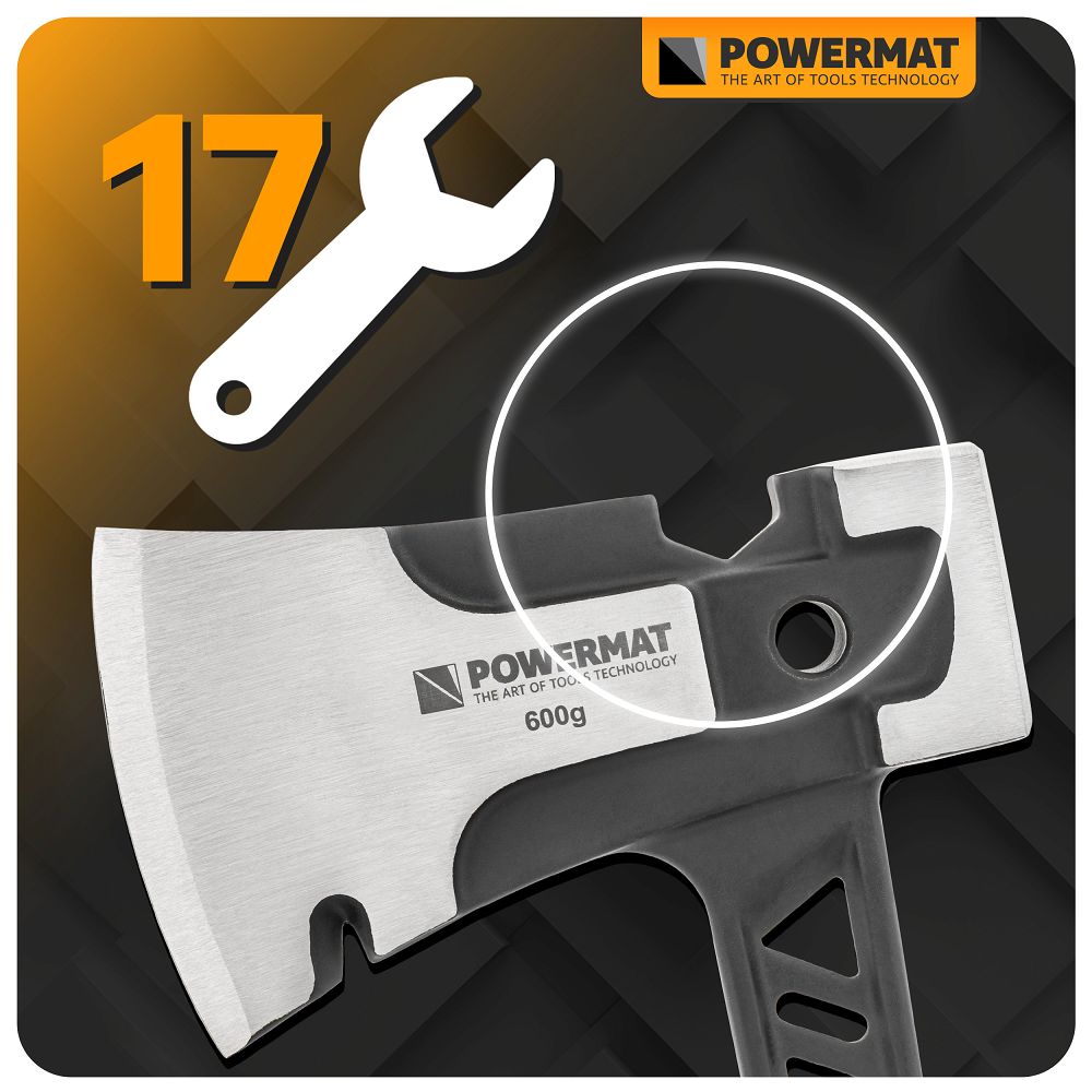 Tesárska sekera 3v1, 365mm | PM-AX-600-910T je robustný nástroj určený na efektívne štiepenie a opracovanie dreva v poľných aj lesných podmienkach. Sekera je vyrobená z jedného kusu kutej a tvrdenej ocele, čo zaručuje maximálnu odolnosť aj odolnosť voči intenzívnemu používaniu. Nástroj kombinuje sekeru, kladivo a 17 mm kľúč, čo vám umožňuje kladivom udierať, páčiť, štiepať a efektívne vytiahnuť klince.