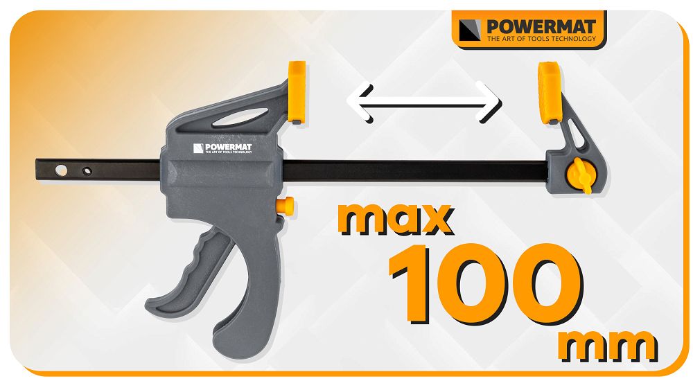 Tesárska svorka, 100x35mm | PM-SSD-M4T sa dá použiť ako klasická svorka aj ako rozpínadlo presunutím ramena na opačnú stranu. To vám umožňuje nielen stláčať prvky k sebe, ale aj ovládať ich rozťahovanie, napr. pri montáži rámov, dverových rámov alebo konštrukcií skríň. Kompaktná celková dĺžka 200 mm uľahčuje manipuláciu s nástrojom v stiesnených priestoroch. Konštrukcia zároveň zostáva stabilná a odolná pri zaťažení.