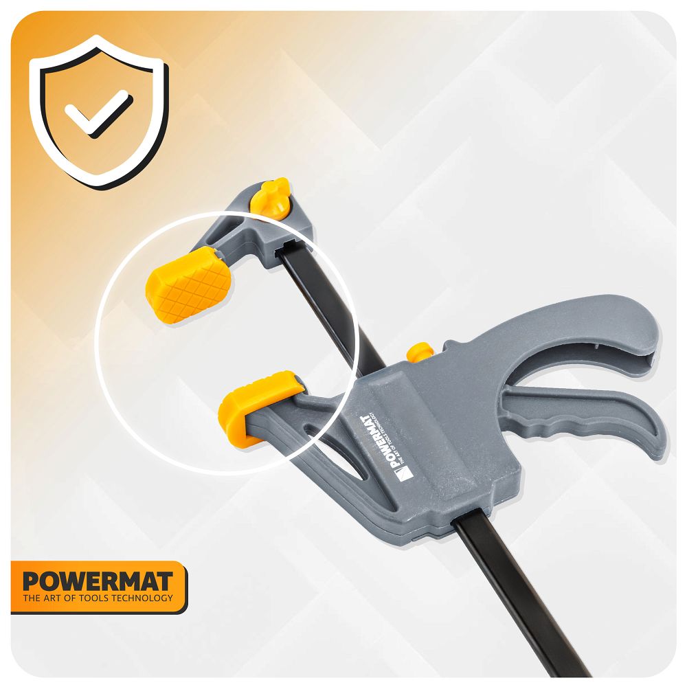Pákový mechanizmus vytvára rovnomerný tlak bez rizika posunutia prvku. Nástroj pracuje stabilne a pohyb čeľustí prebieha kontrolovane a opakovane aj pri ďalších aplikáciách. Mäkké ochranné kryty na čeľustiach chránia povrch pred poškriabaním a deformáciou, takže nástroj bezpečne využijete pri práci s drevenými, kovovými aj povrchovo upravenými prvkami.