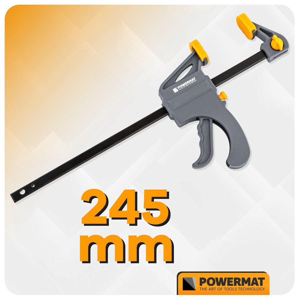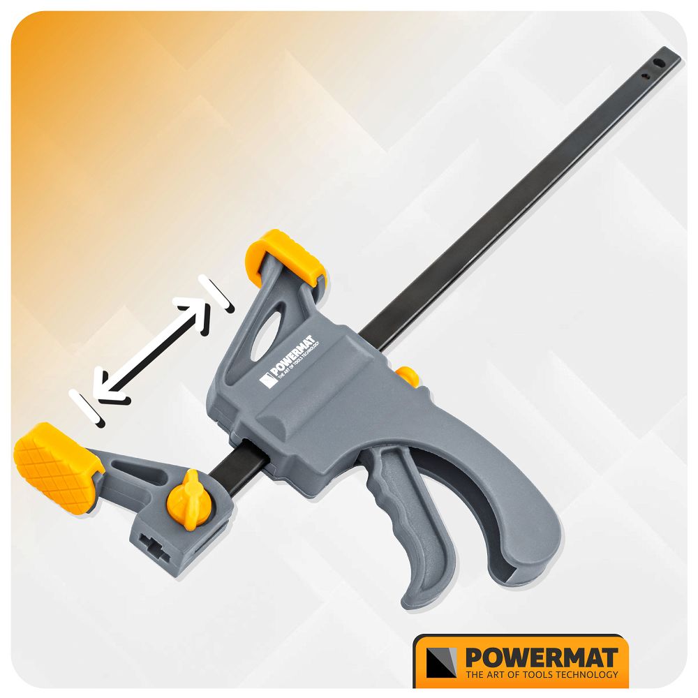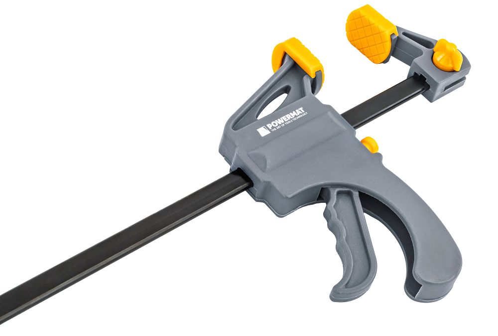 Tesárska svorka, 150x35mm | PM-SSD-M6T sa dá použiť ako klasická svorka aj ako rozpínadlo presunutím ramena na opačnú stranu. To vám umožňuje nielen stláčať prvky k sebe, ale aj ovládať ich rozťahovanie, napr. pri montáži rámov, dverových rámov alebo konštrukcií skríň. Kompaktná celková dĺžka 245 mm uľahčuje manipuláciu s nástrojom v stiesnených priestoroch. Konštrukcia zároveň zostáva stabilná a odolná pri zaťažení.