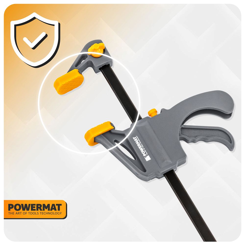 Pákový mechanizmus vytvára rovnomerný tlak bez rizika posunutia prvku. Nástroj pracuje stabilne a pohyb čeľustí prebieha kontrolovane a opakovane aj pri ďalších aplikáciách. Mäkké ochranné kryty na čeľustiach chránia povrch pred poškriabaním a deformáciou, takže nástroj bezpečne využijete pri práci s drevenými, kovovými aj povrchovo upravenými prvkami.