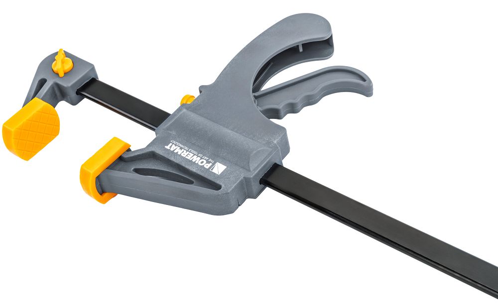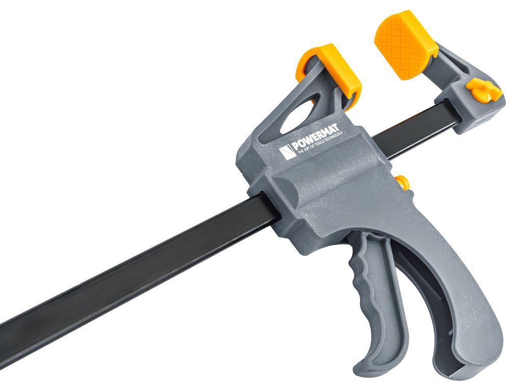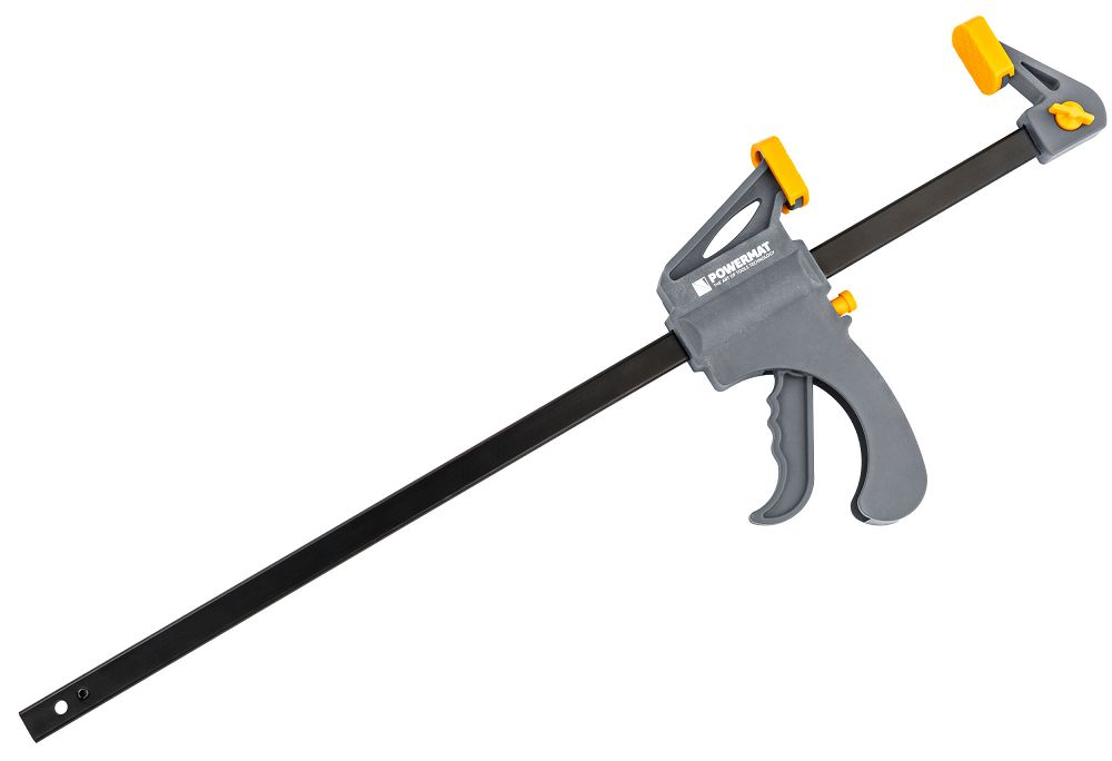 Tesárska svorka, 450x60mm | PM-SSD-18Tsa dá použiť ako klasická svorka aj ako rozpínadlo presunutím ramena na opačnú stranu. To vám umožňuje nielen stláčať prvky k sebe, ale aj ovládať ich rozťahovanie, napr. pri montáži rámov, dverových rámov alebo konštrukcií skríň. Kompaktná celková dĺžka 630 mm uľahčuje manipuláciu s nástrojom v stiesnených priestoroch. Konštrukcia zároveň zostáva stabilná a odolná pri zaťažení.