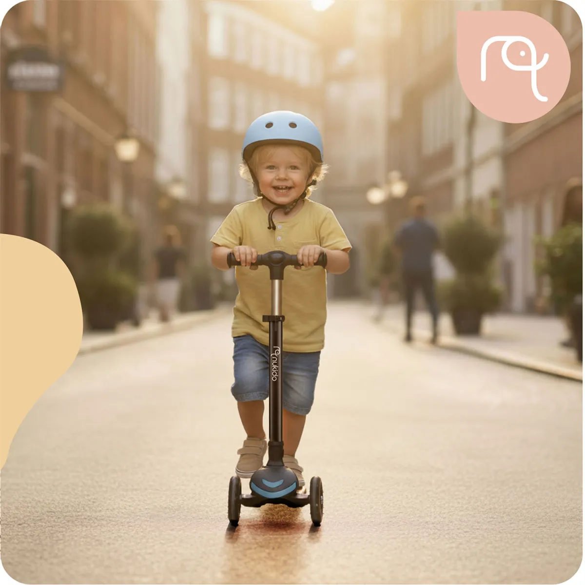 Trojkolesová kolobežka, čierna | Nukido Flippo je bezpečné a zábavné vozidlo, ktoré podporuje rovnováhu a pohybovú koordináciu detí. Vďaka trojkolesovej konštrukcii sa deti rýchlejšie naučia udržiavať rovnováhu a súčasne majú spoľahlivý podklad pre hru aj pohyb. Kolobežka ponúka široký, protišmykový podstavec, nožný zadný brzdový systém a nastaviteľnú výšku riadenia či sedadla, čo umožňuje prispôsobiť ju rastu dieťaťa a predĺžiť jej využitie.