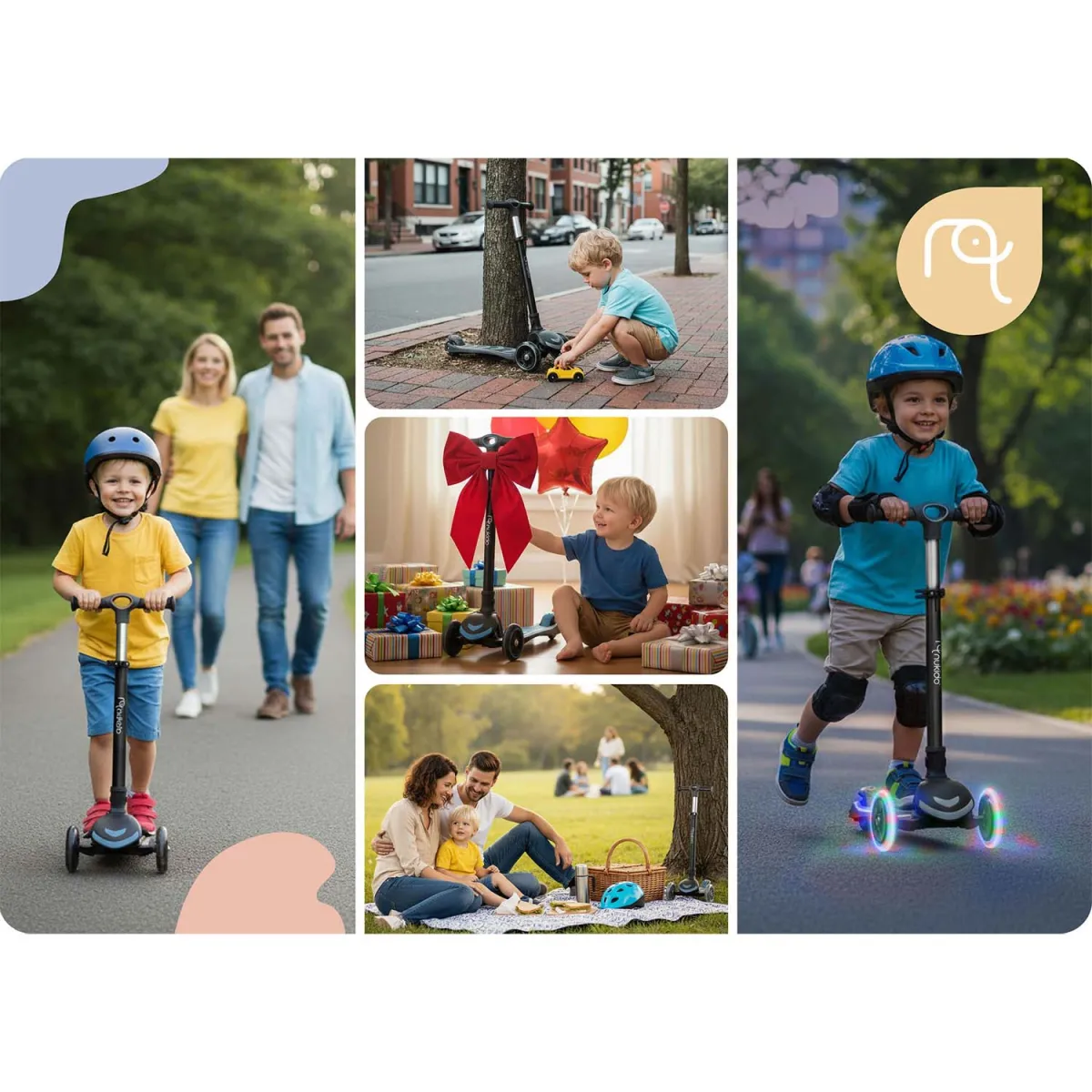 Odnímateľné sedadlo umožňuje prechod z jazdy v sede na jazdu v stoji, čím sa zariadenie stáva univerzálnou voľbou pre menšie aj väčšie deti. Kolobežka je tiež vybavená certifikátmi bezpečnosti (EN 71-1,2,3) a jej maximálna nosnosť je až 50 kg – takže je dostatočne robustná aj pre staršie deti. Elegantné prevedenie v zlatej farbe pridáva štýlový prvok, a tým sa model hodí ako skvelý darček alebo doplnok detskej izby i vonkajšieho hrania.