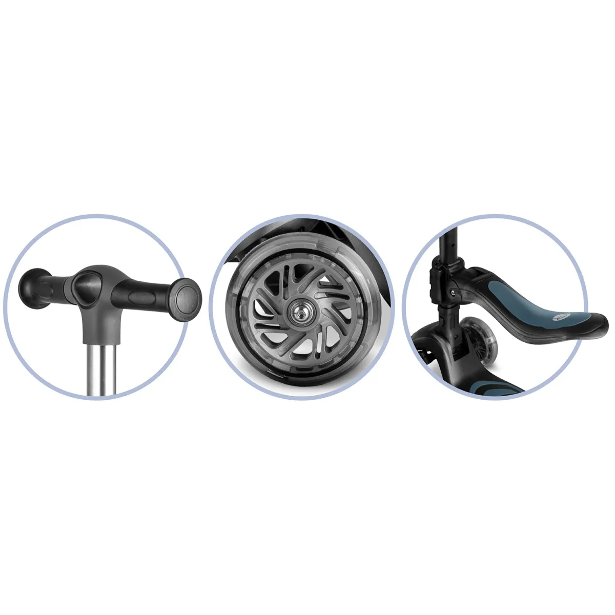 Riadenie sa vykonáva výlučne vyvažovaním tela, bez otáčania riadidiel. Stačí sa mierne nakloniť v požadovanom smere a hotovo! Deti rýchlo zvládnu túto techniku jazdy a cvičia svoj zmysel pre rovnováhu. Kolobežka zostáva pri otáčaní stabilná vďaka trom kolesám.