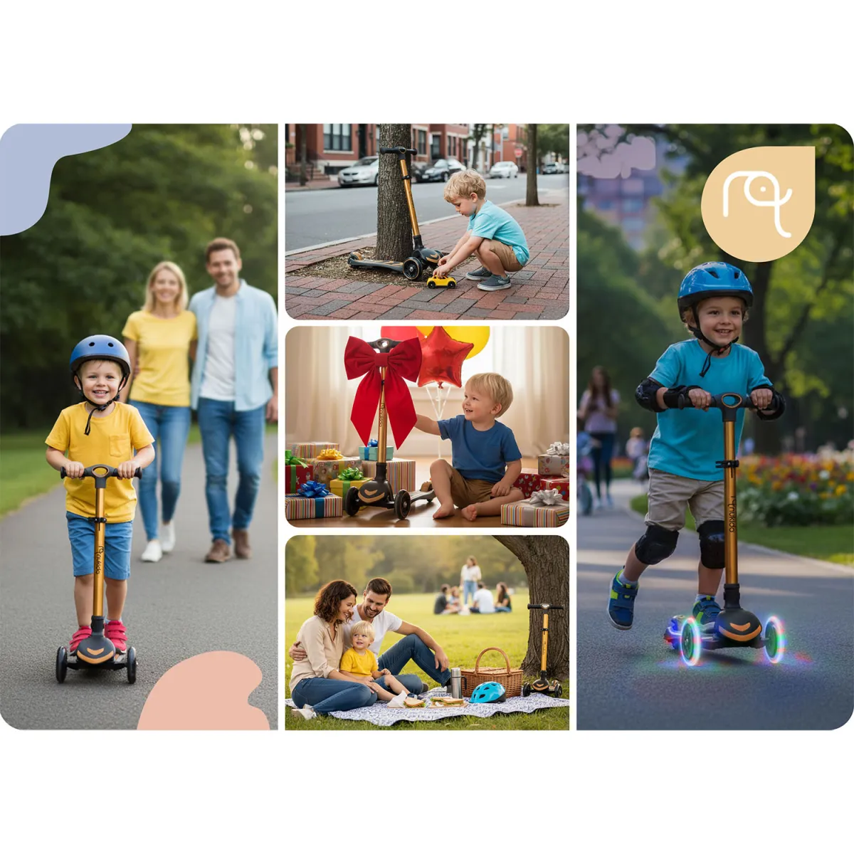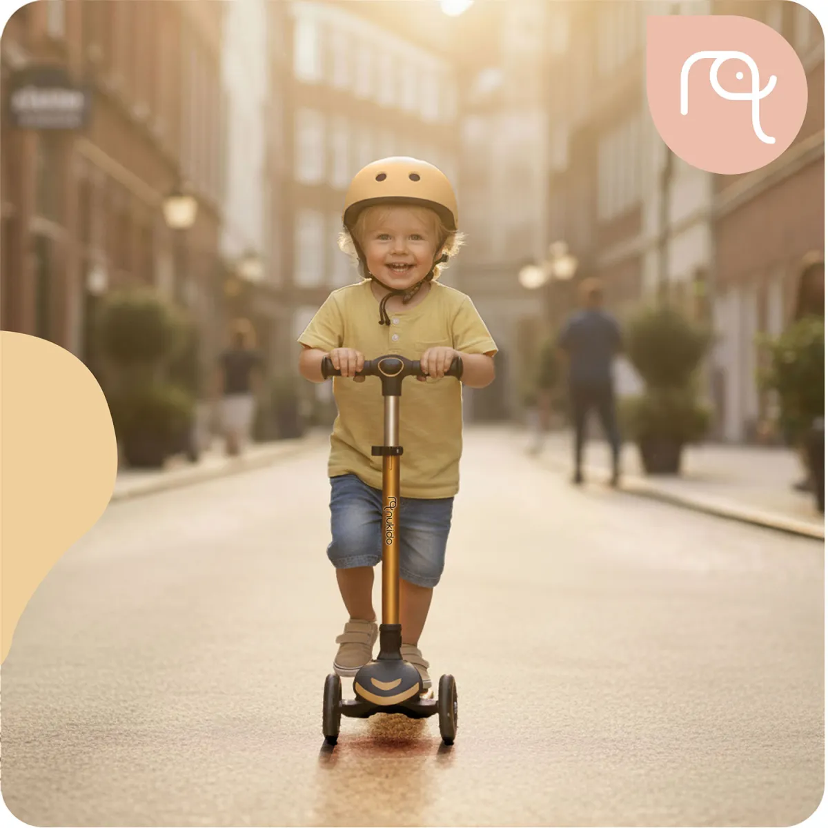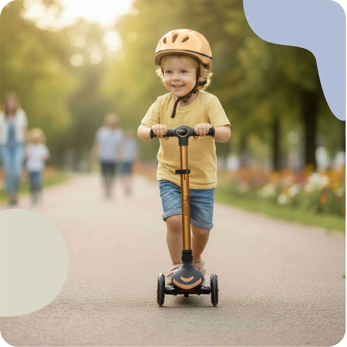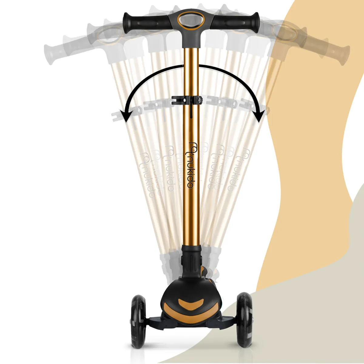 Trojkolesová kolobežka, zlatá | Nukido Flippo je bezpečné a zábavné vozidlo, ktoré podporuje rovnováhu a pohybovú koordináciu detí. Vďaka trojkolesovej konštrukcii sa deti rýchlejšie naučia udržiavať rovnováhu a súčasne majú spoľahlivý podklad pre hru aj pohyb. Kolobežka ponúka široký, protišmykový podstavec, nožný zadný brzdový systém a nastaviteľnú výšku riadenia či sedadla, čo umožňuje prispôsobiť ju rastu dieťaťa a predĺžiť jej využitie.