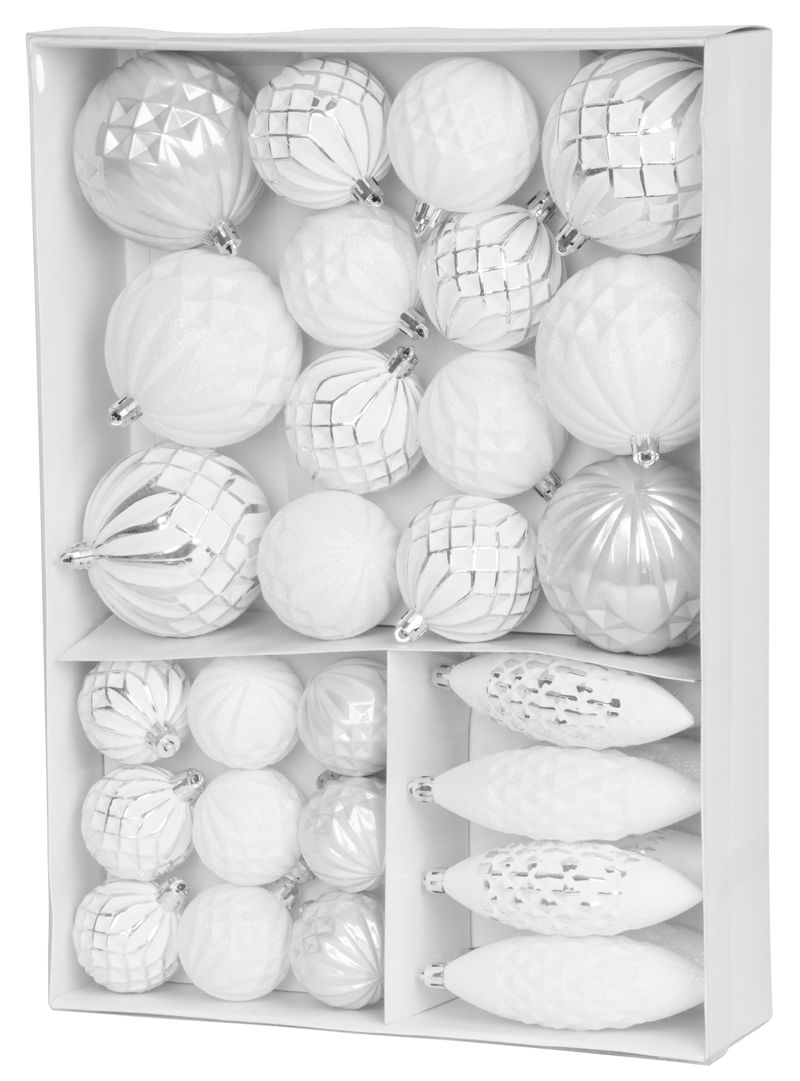 Vianočné ozdoby, 31ks, bielo-strieborné | MagicHome