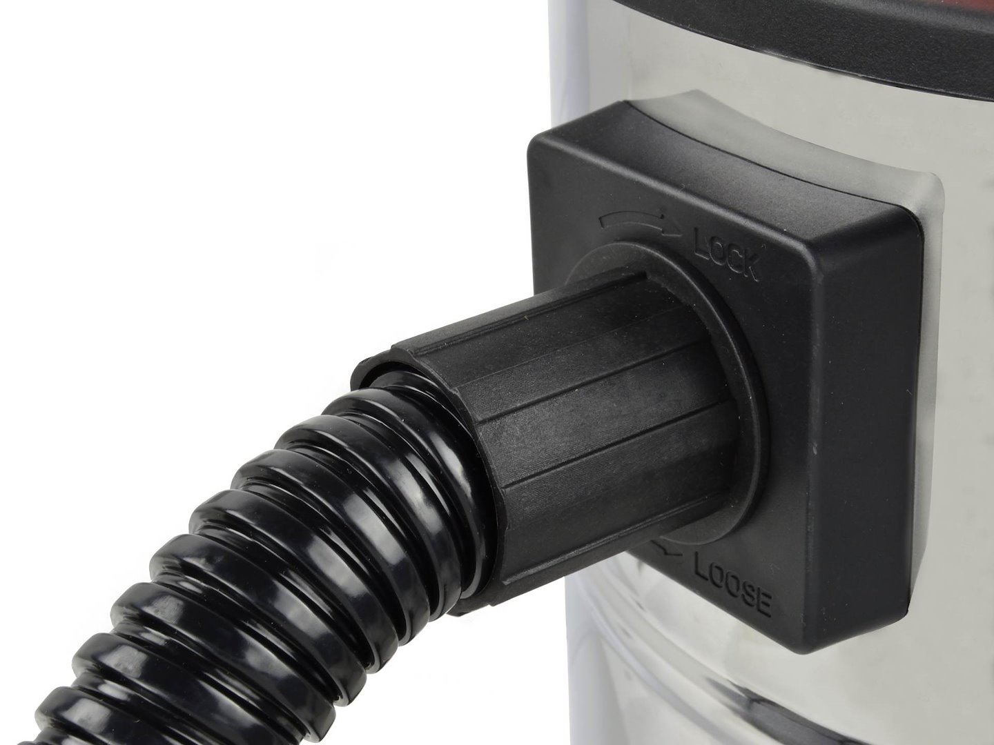 Štyri kolieska a rukoväť umožňujú ľahké a pohodlné manévrovanie vysávača počas prevádzky. Dvojitý filtračný systém s HEPA filtrom a textilným filtrom chráni a predlžuje životnosť motora. Hadica je chránená proti teplu vďaka hliníkovému povlaku vo vnútri. Súprava obsahuje aj okrúhlu hliníkovú dýzu s dĺžkou 23 cm a priemerom 35 mm.