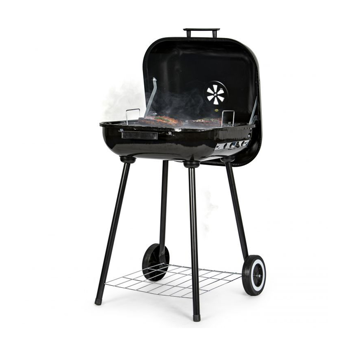 Záhradný gril štvorcového tvaru s vekom, ktoré je pripevnené na závesoch, to Vám uľahčuje manipuláciu, nakoľko po otvorení veka nie je potrebné odkladať na iné miesto. Vhodný pre každú grilovaciu akciu v sezóne, pri rodinnej oslave alebo večernom, víkendovom posedení s priateľmi.