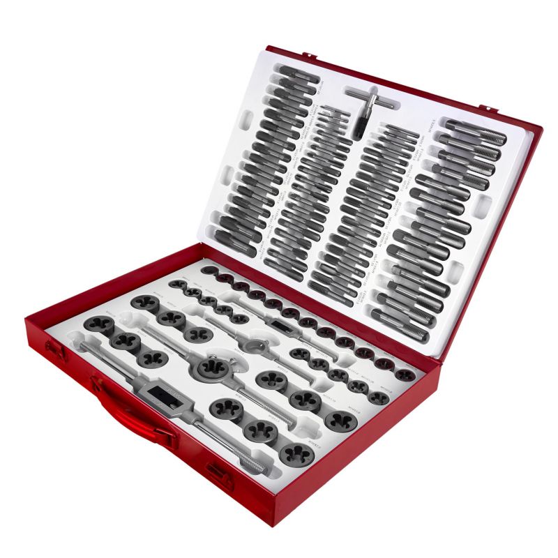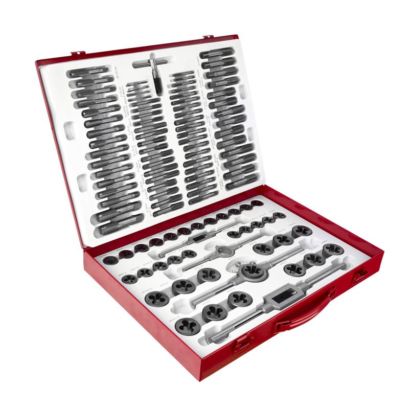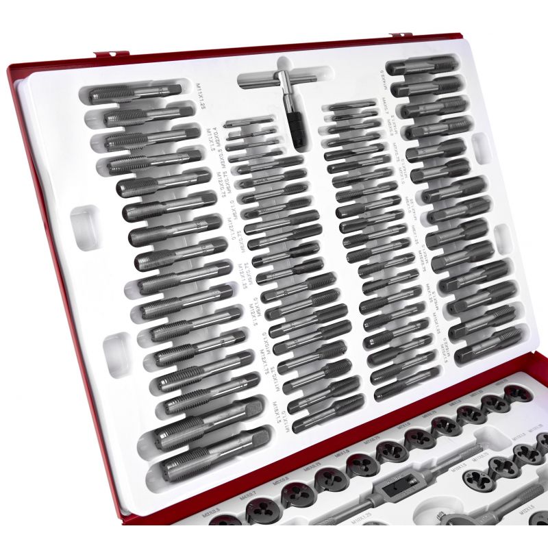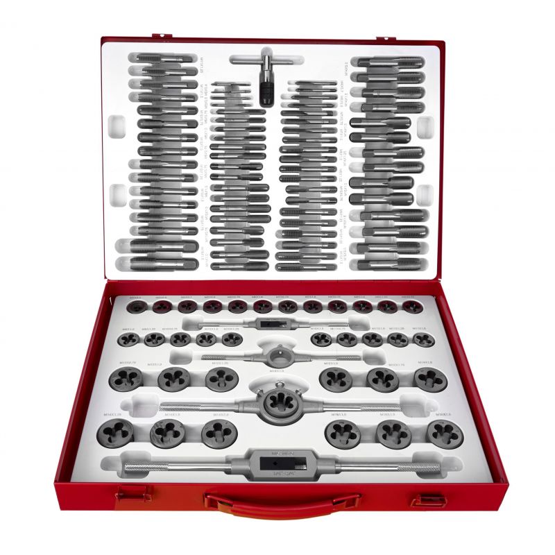 Závitníky a matice, 110ks | KD10250 ponúkajú spoľahlivé riešenie pre tvorbu a opravu závitov pri rôznych mechanických a dielenských prácach. Sada je vyrobená z najkvalitnejšej kalenej ocele, osvedčí sa v každej dielni a garáži. Súprava sa používa na opravu závitových spojov všetkých typov vo väčšine materiálov. Vďaka veľkému počtu prvkov je súprava veľmi univerzálna. Je zabalená v pevnom kovovom kufríku s vyhradenými miestami pre každý nástroj, aby bolo všetko upratané.