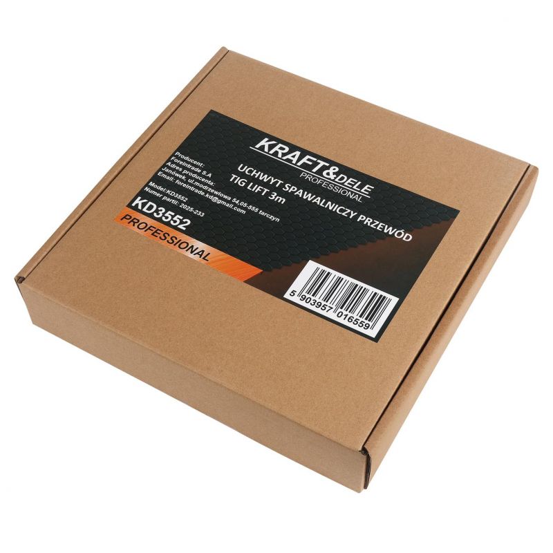 Zváracia horák, TIG LIFT, 3m | KD3552 je vysokokvalitný 3-metrový kábel TIG určený na presné zváranie TIG s dotykovým zapaľovaním (LIFT). Je kompatibilný s väčšinou zváracích strojov TIG DC a ideálny na prácu s materiálmi, ako je nehrdzavejúca oceľ, uhlíková oceľ a meď. Vyznačuje sa robustnou konštrukciou, ergonomickým tvarom a kompletnou sadou príslušenstva, ktoré vám umožní rýchlo začať pracovať. Vďaka kompaktnému dizajnu a starostlivo vybraným materiálom zaručuje pohodlie pri používaní a vysokú presnosť oblúka. Vynikajúca voľba pre profesionálov a náročných amatérov zvárania TIG.